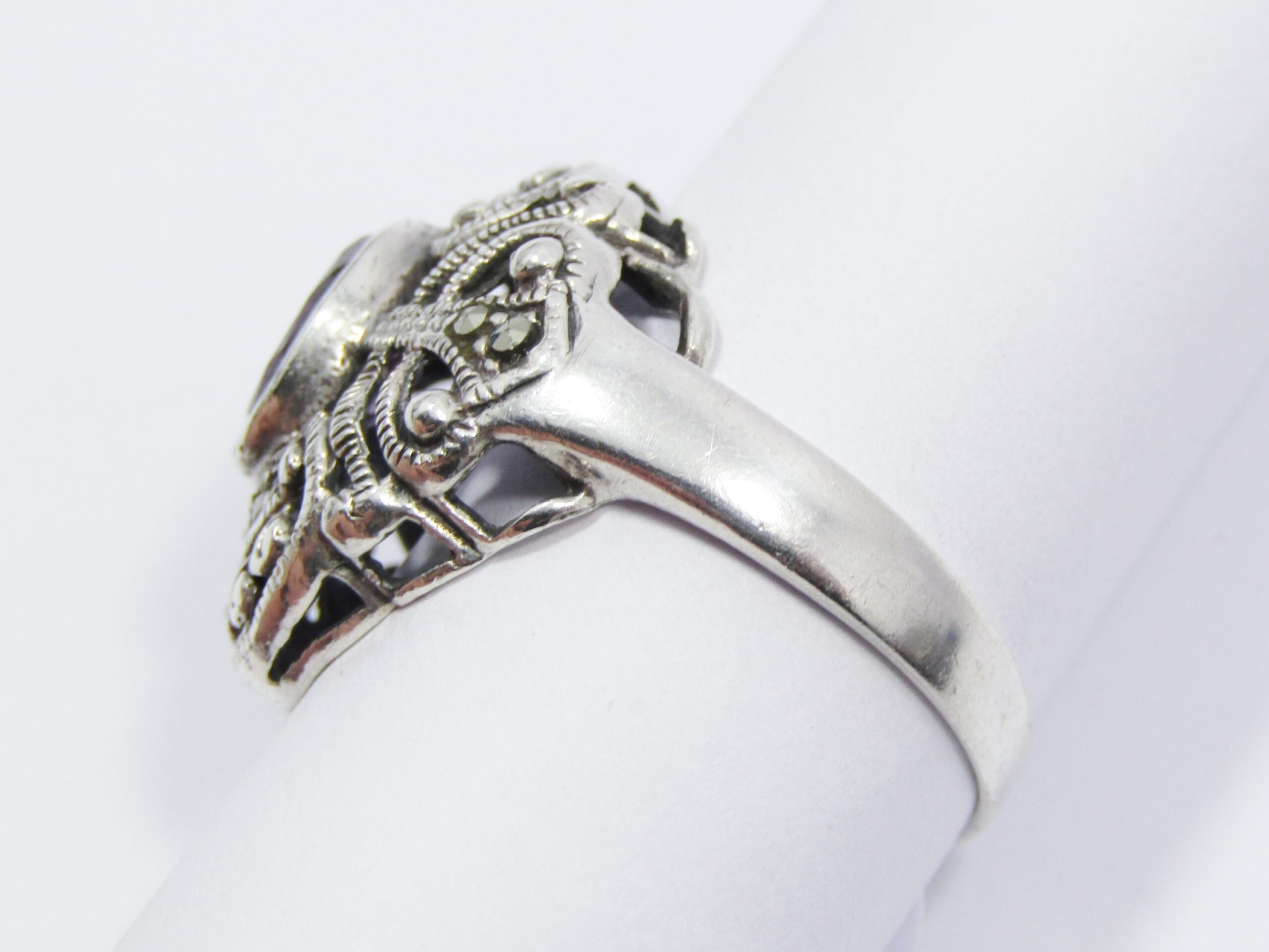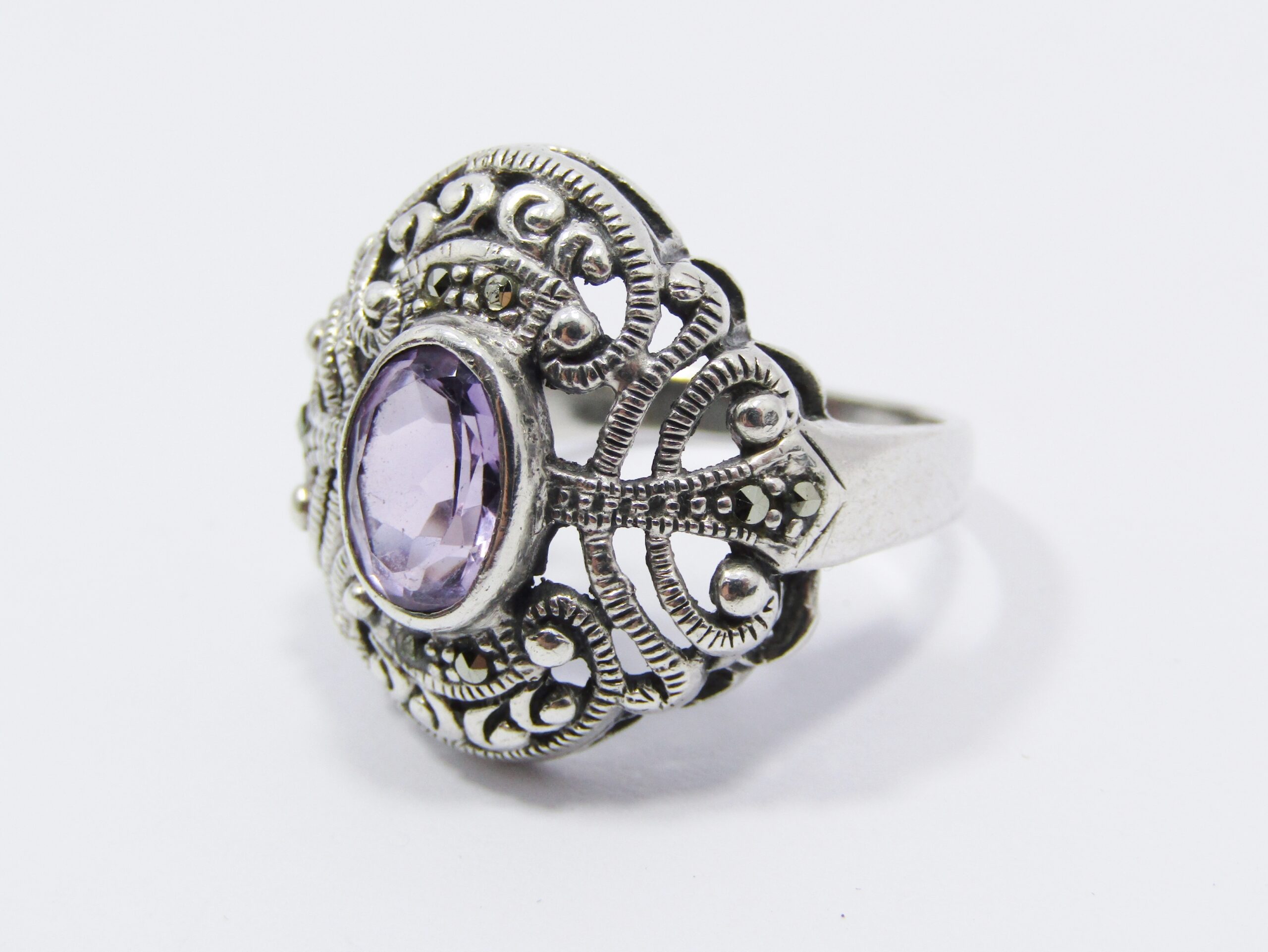 A Beautiful Chunky Vintage Design Amethyst Ring in Sterling Silver-See photos showing you more detail and design on this amazing piece -marked accordingly 925 Sterling Silver.