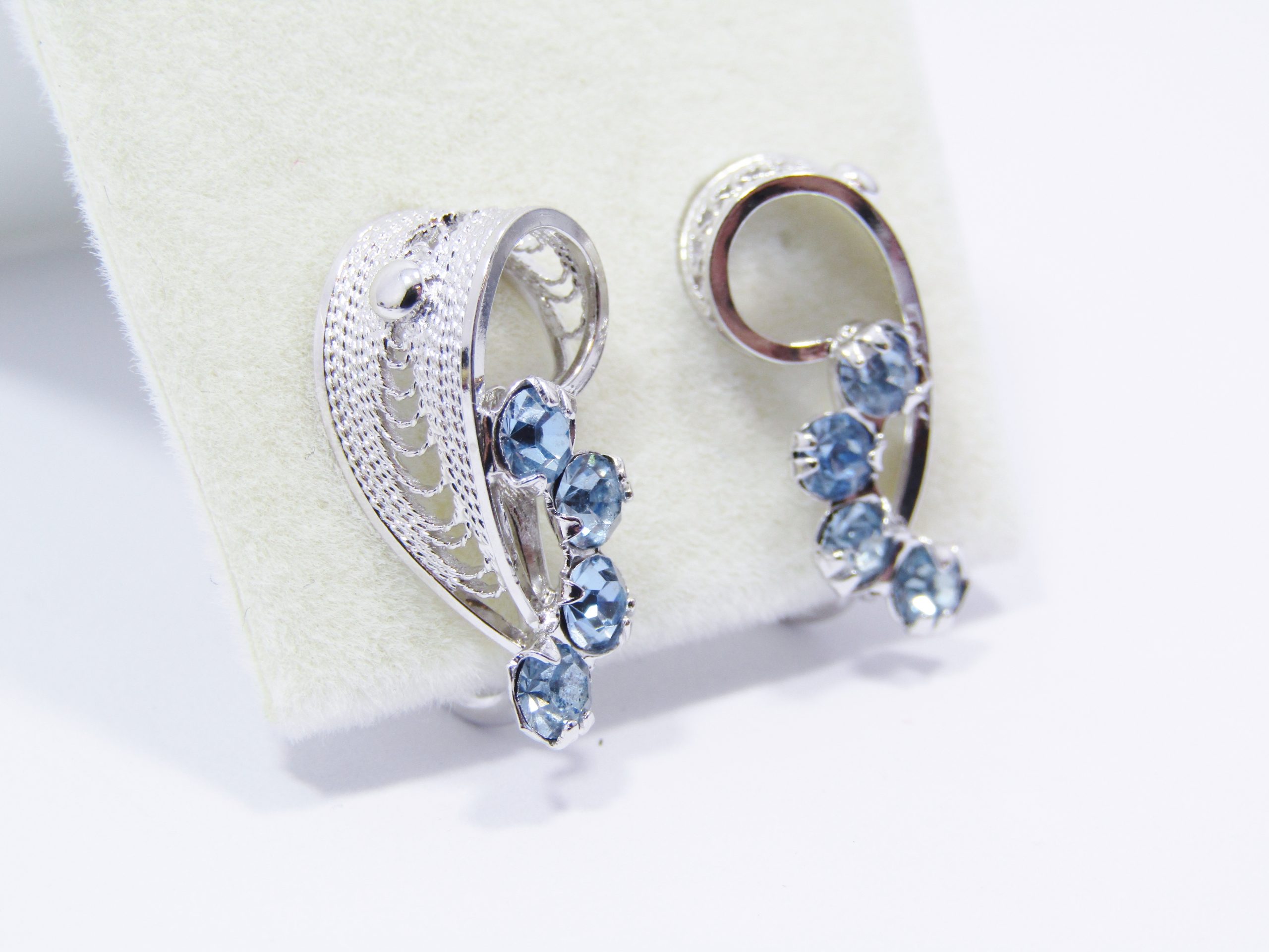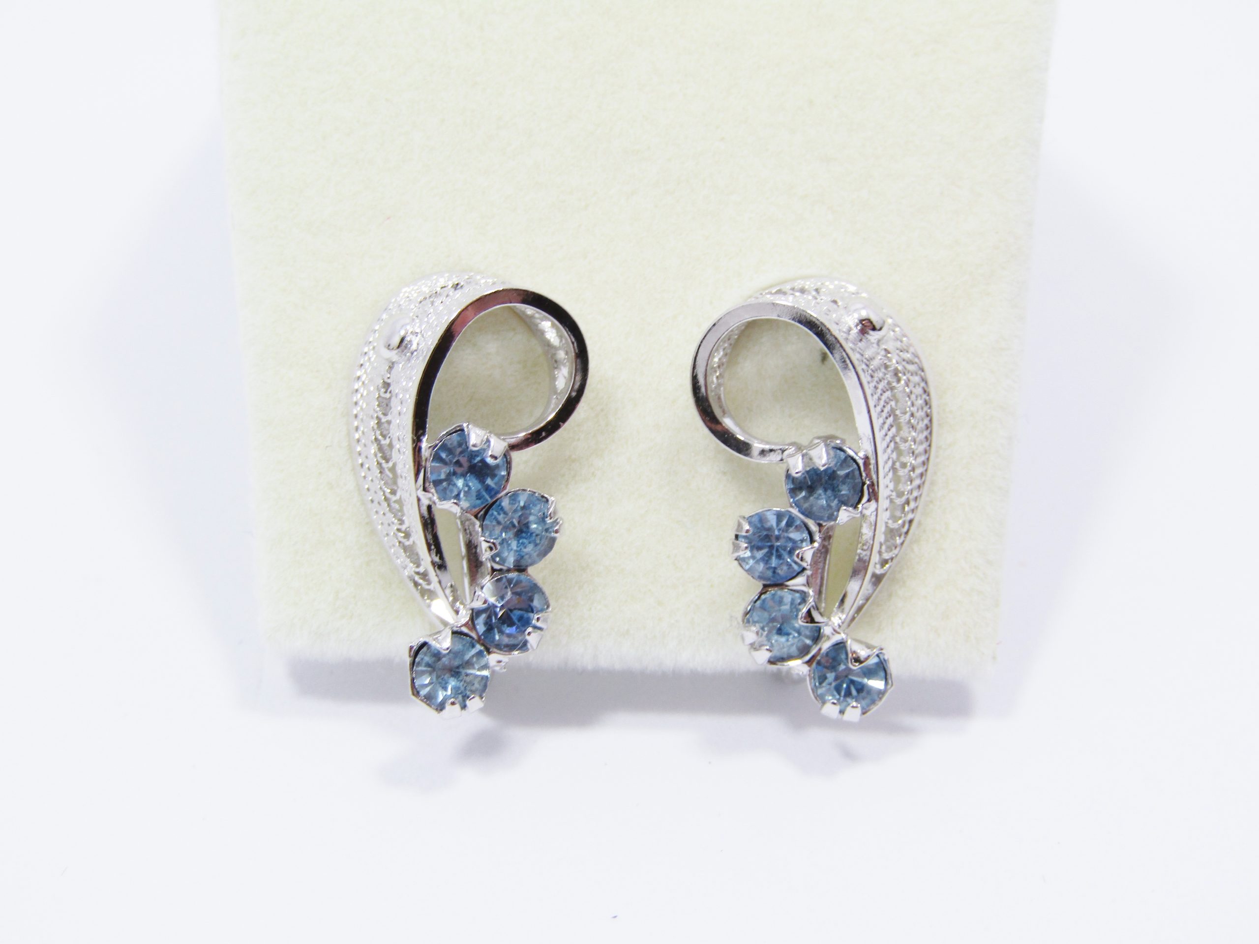 A Beautiful Pair of Vintage Design Screw Back Earrings With light Blue paste Stones in Sterling Silver-See photos showing you more detail and design on this amazing pair-marked accordingly 925 Sterling Silver