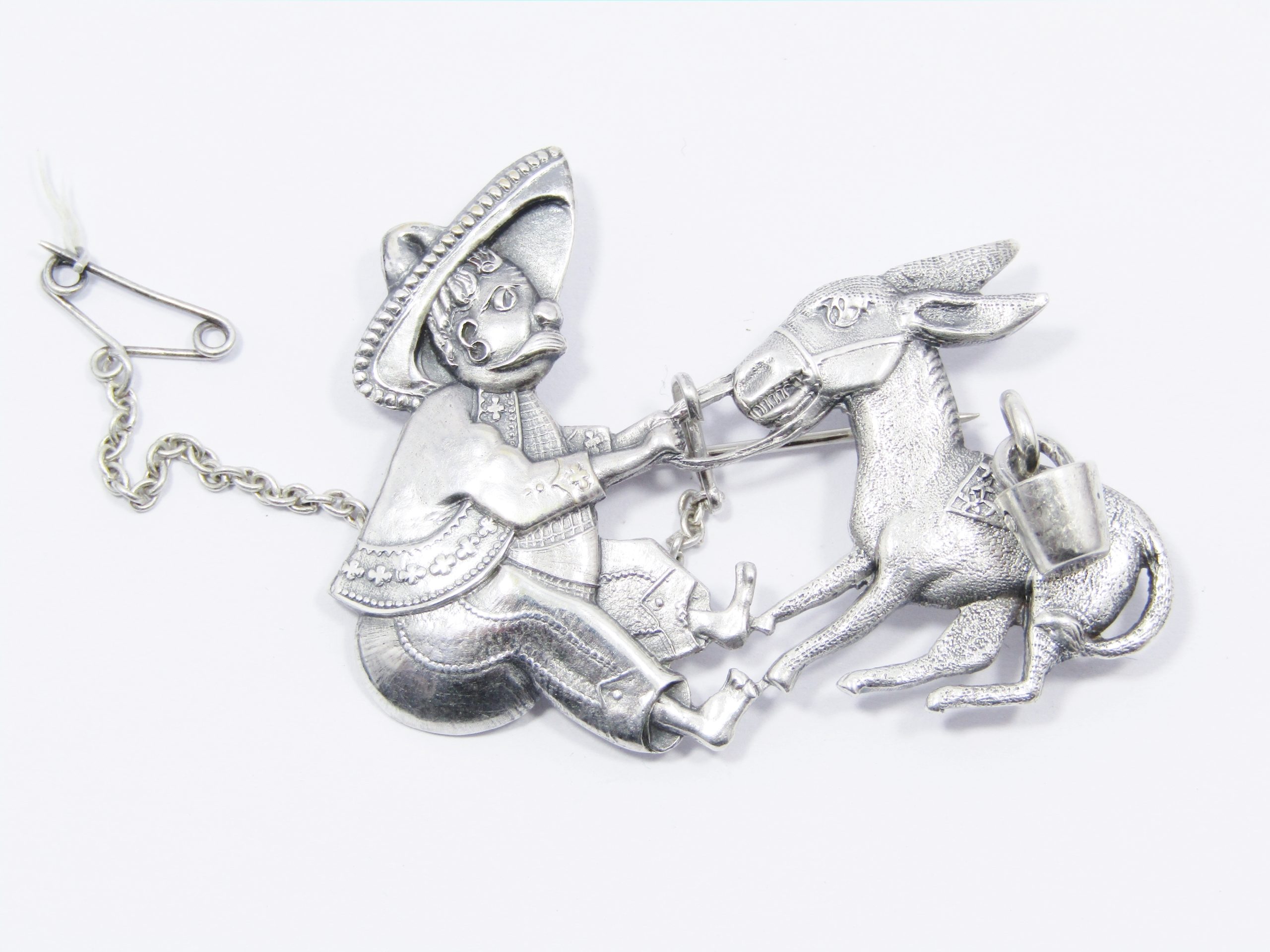A Gorgeous and Oh So Different CANDIDA Mexican and the Donkey Brooch in Sterling Silver-See photos showing you more detail and design on this Amazing Piece