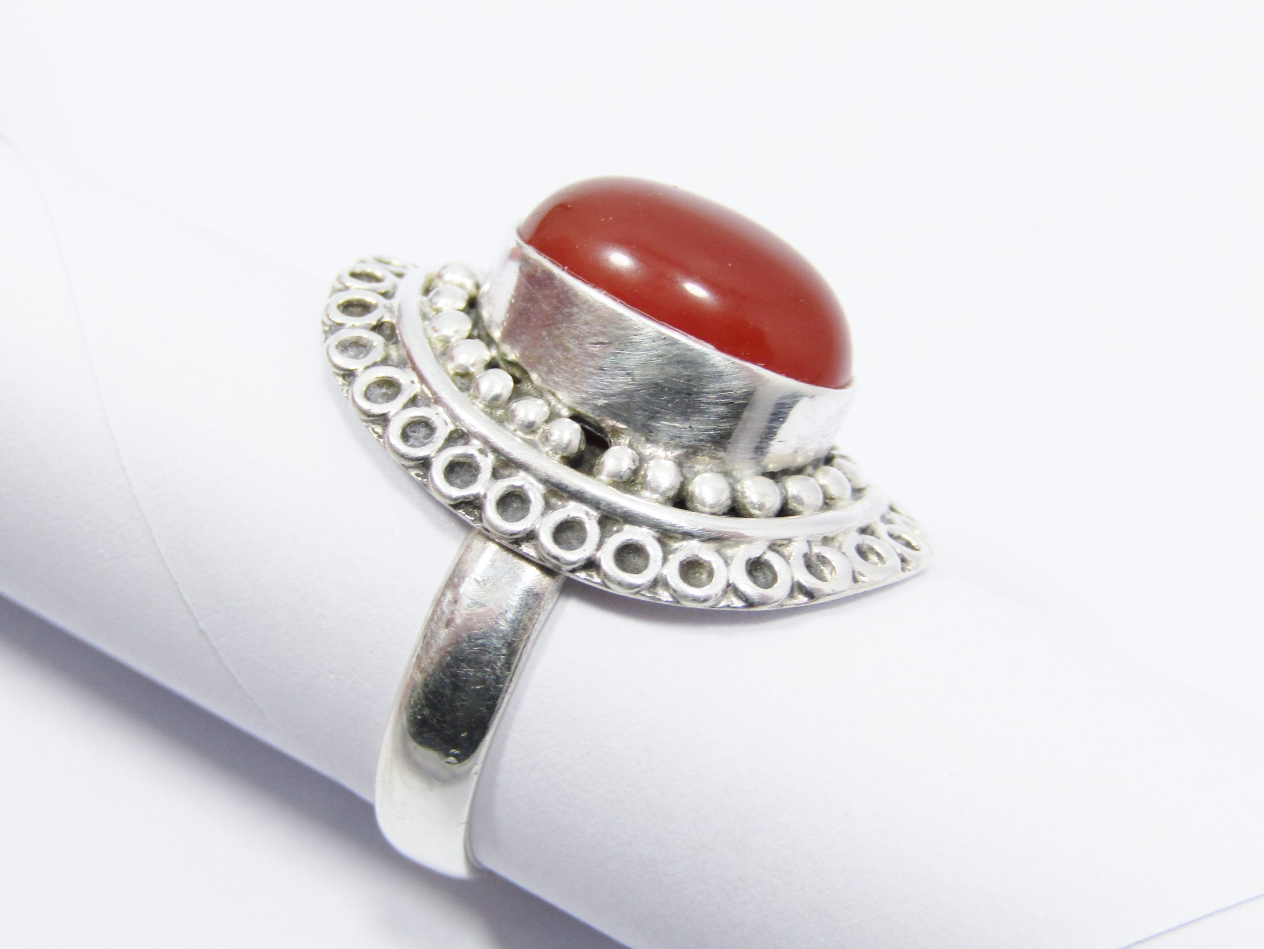 A Gorgeous Bohemian Design Carnelian Ring in Sterling Silver-See photos showing you more detail and design on this amazing ring -marked accordingly 925 Sterling Silver.