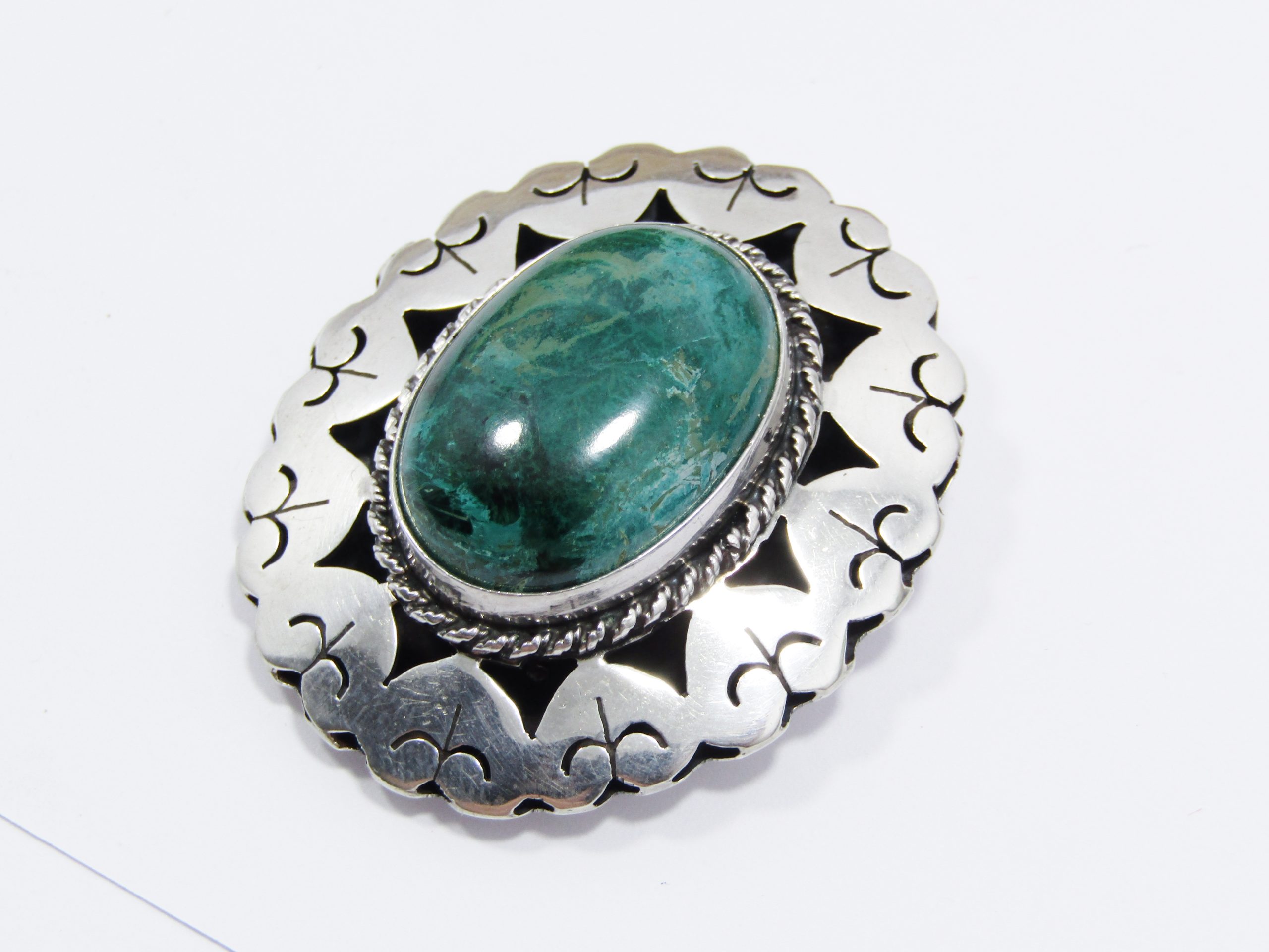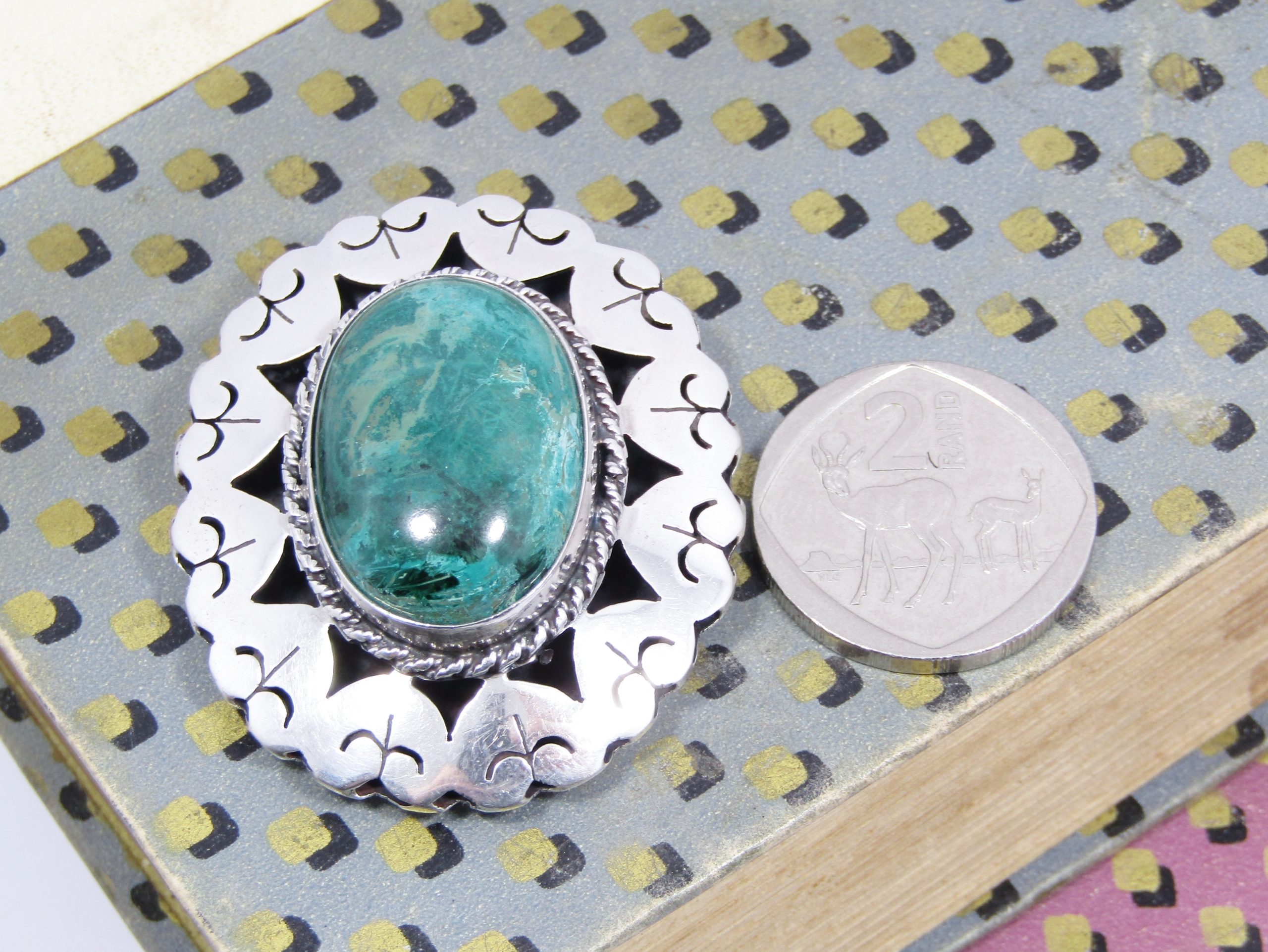 A Gorgeous Chunky Eilat Stone Pendant in Sterling Silver -See photos showing you more detail and design on this amazing Piece -marked accordingly ST925 for Sterling Silver