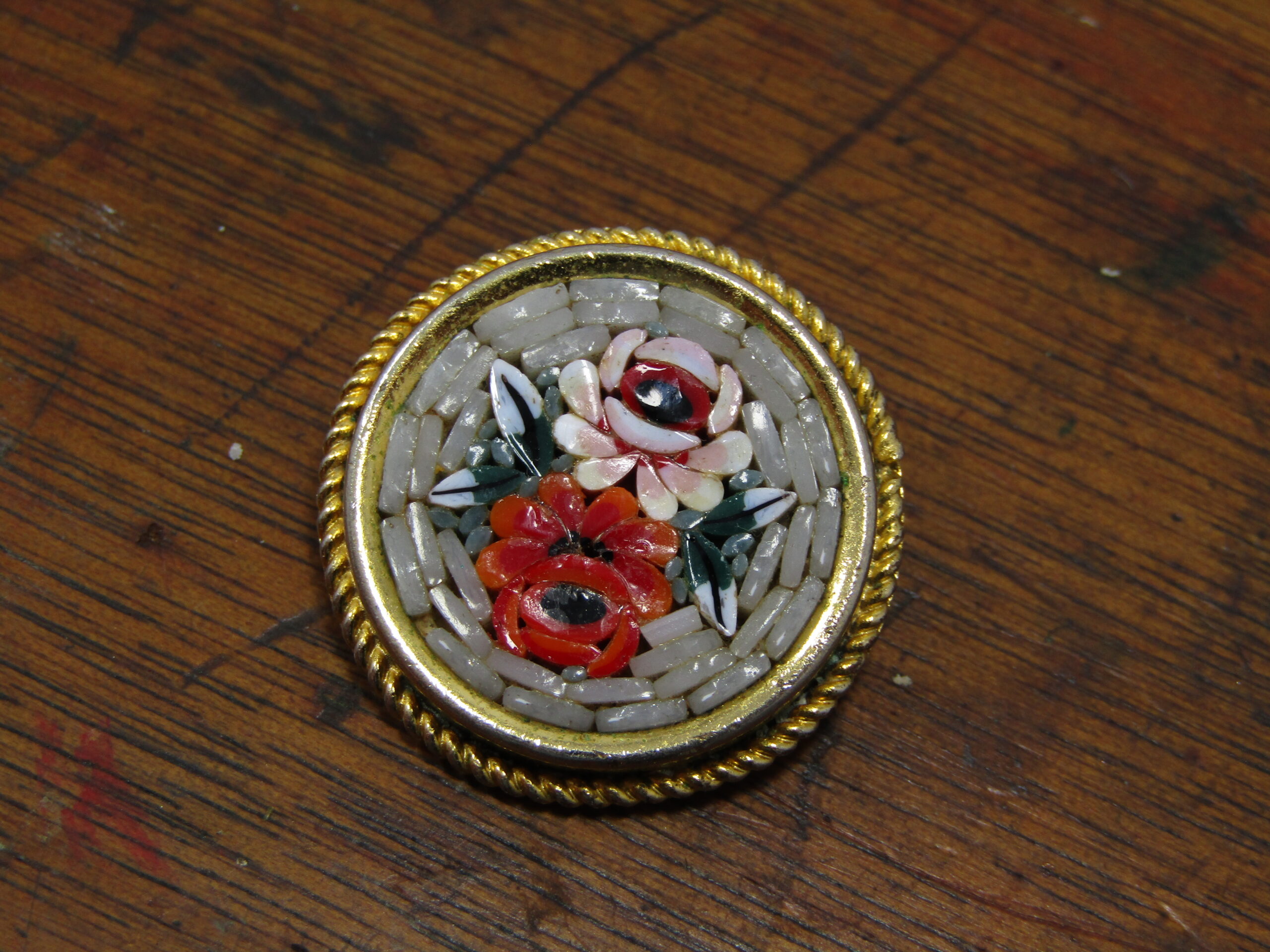 A Gorgeous gold Tone Micro Mosaic brooch