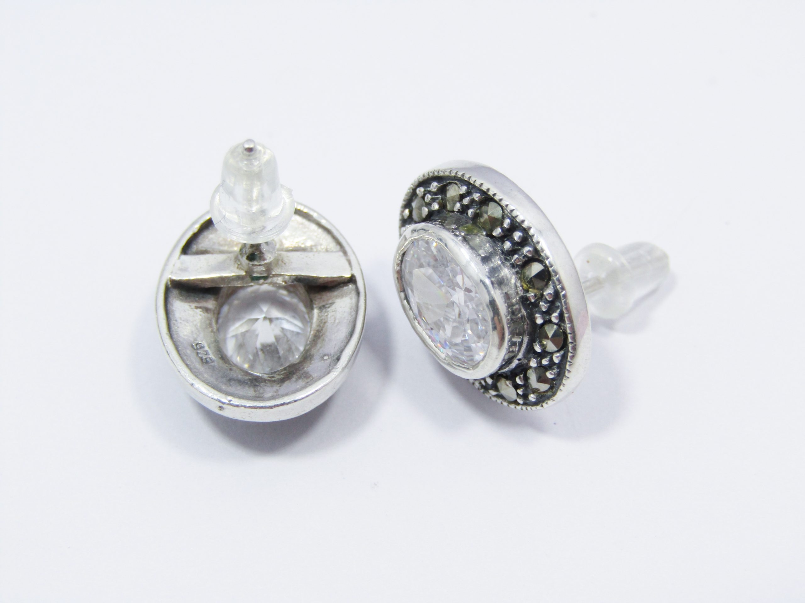 A Gorgeous Pair of Bohemian Design Clear Zirconia Earrings Surrounded with Marcasite's in Sterling Silver