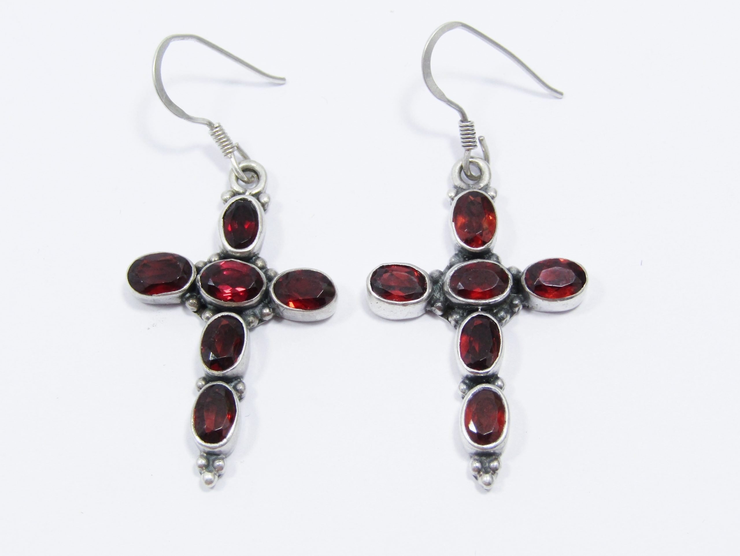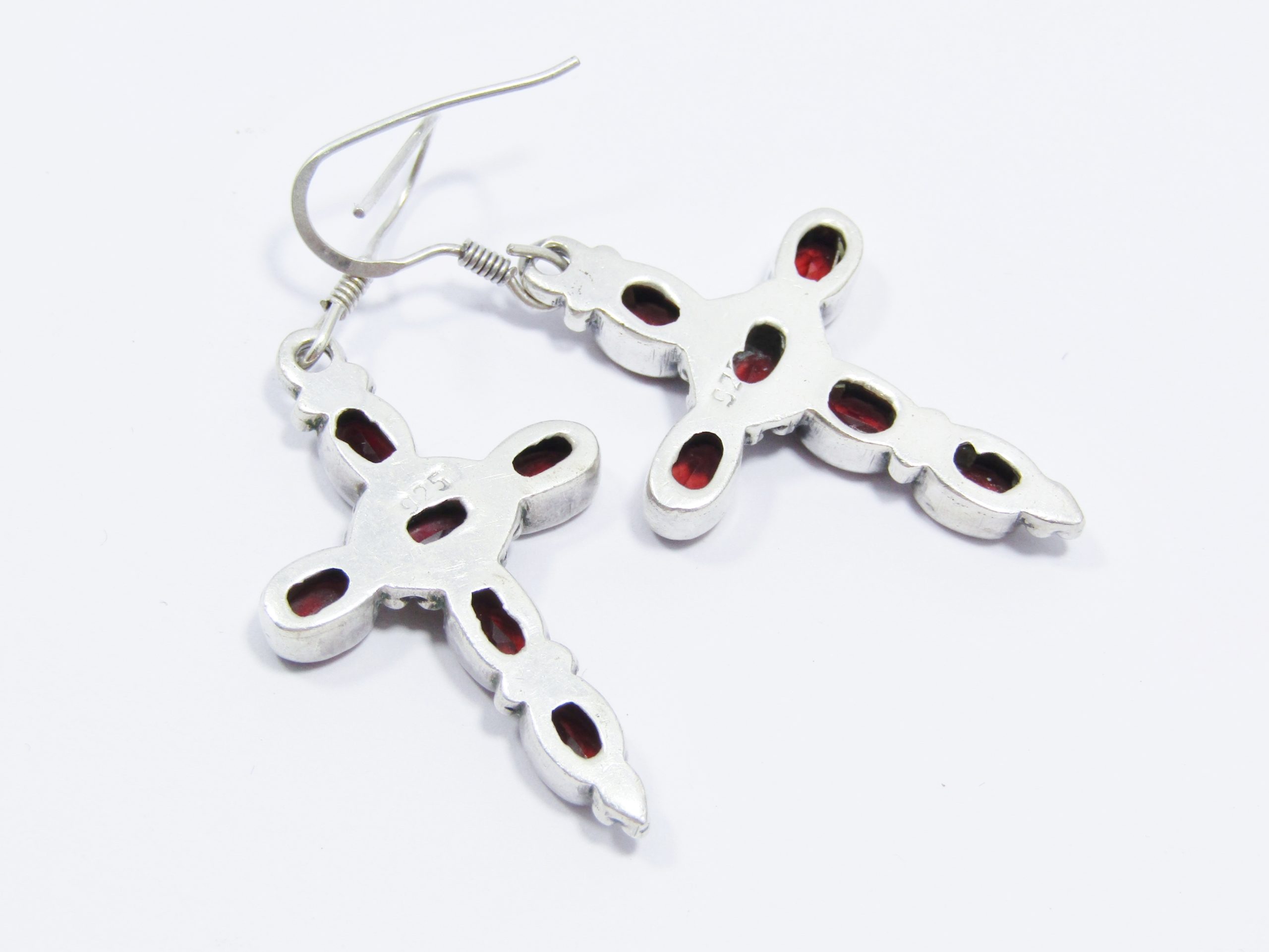 A Gorgeous pair of Garnet Cross Earrings in Sterling Silver