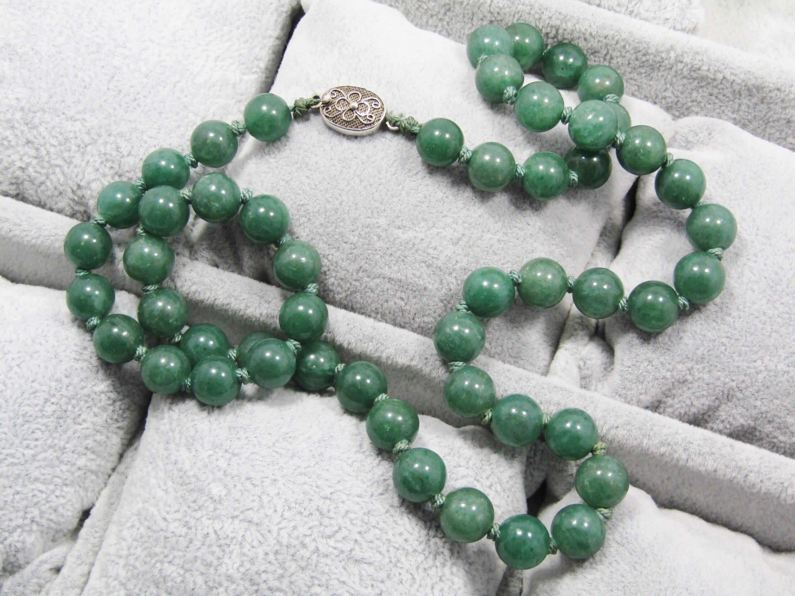 A Gorgeous String Of Aventurine Beads With a Oriental Vintage Clasp in Sterling Silver -See photos showing you more detail and design on this amazing piece -marked accordingly SILVER for Sterling Silver