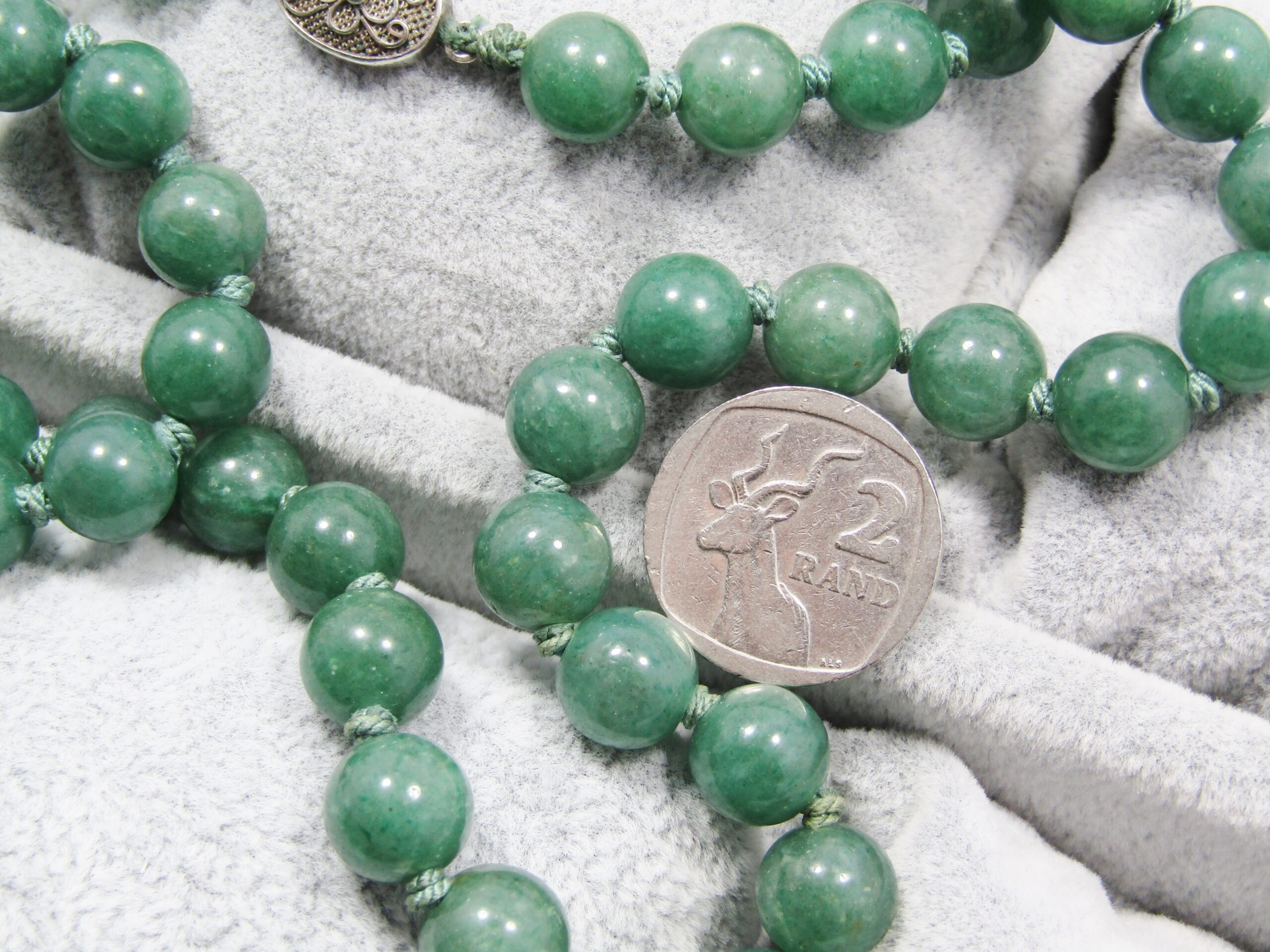 A Gorgeous String Of Aventurine Beads With a Oriental Vintage Clasp in Sterling Silver