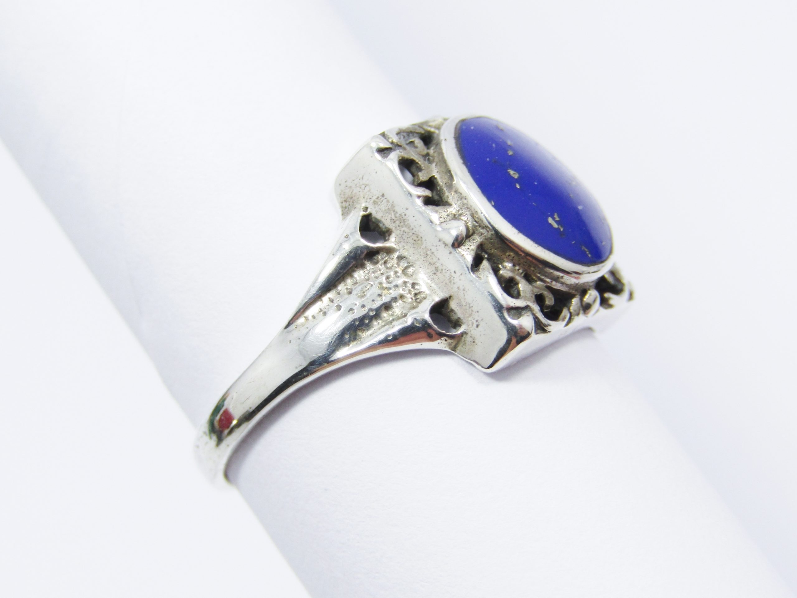 A Lovely Blue Enamel Inlay Ring in Sterling Silver-See photo showing you more detail and design on this lovely ring -marked accordingly 925 Sterling Silver.