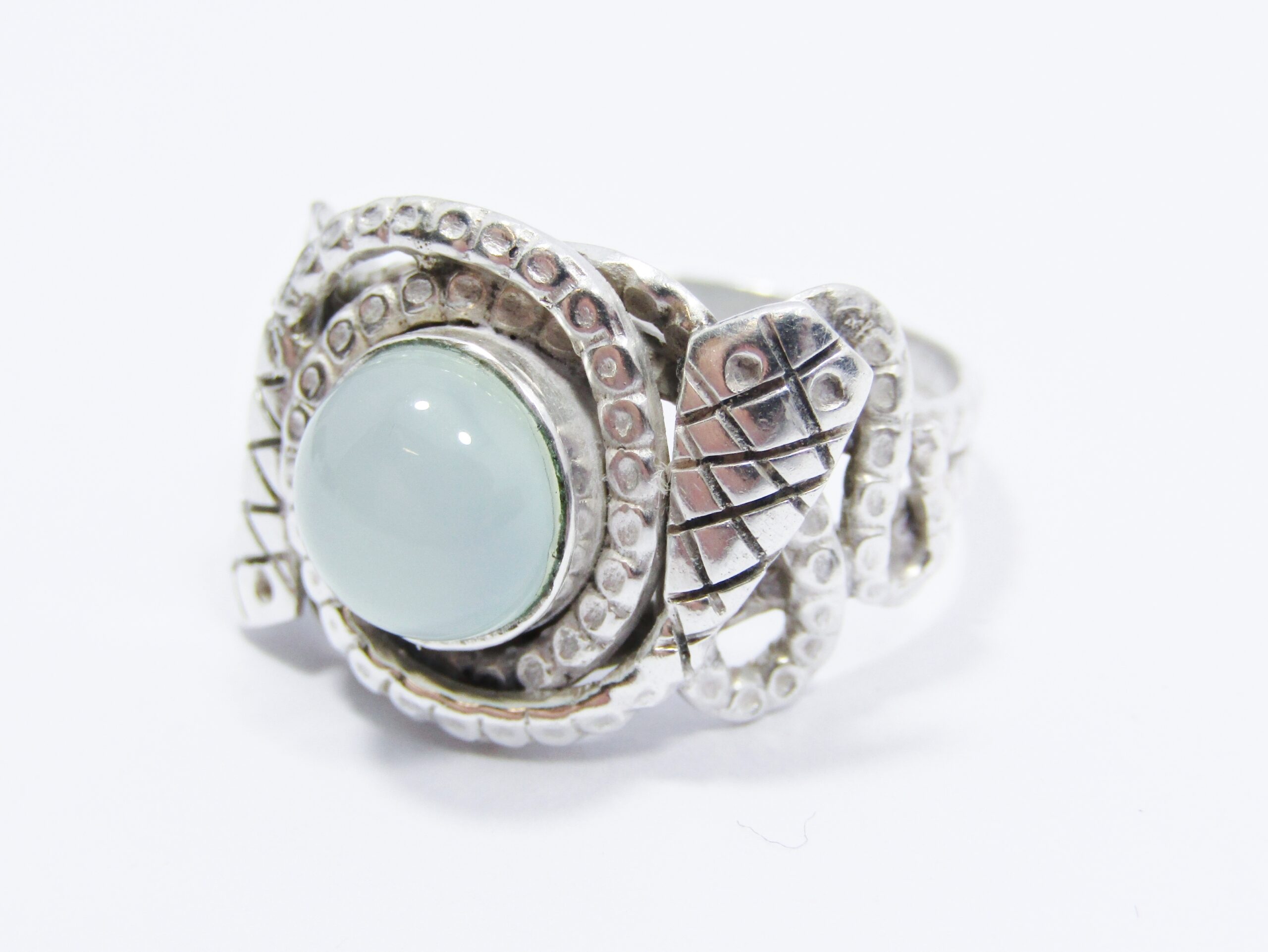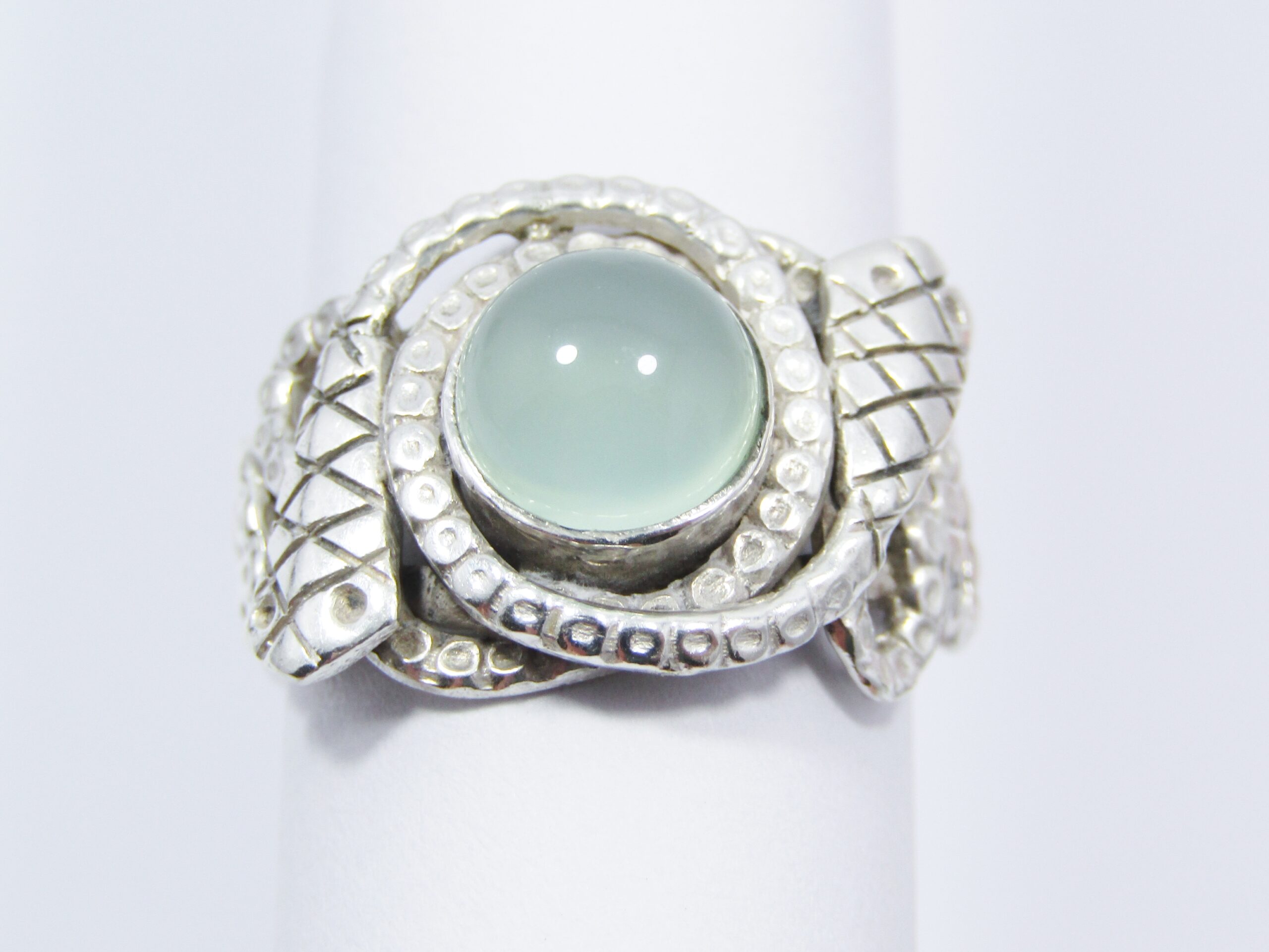 A Lovely Detailed Snake Ring With a Chalcedony Stone Ring in Sterling Silver