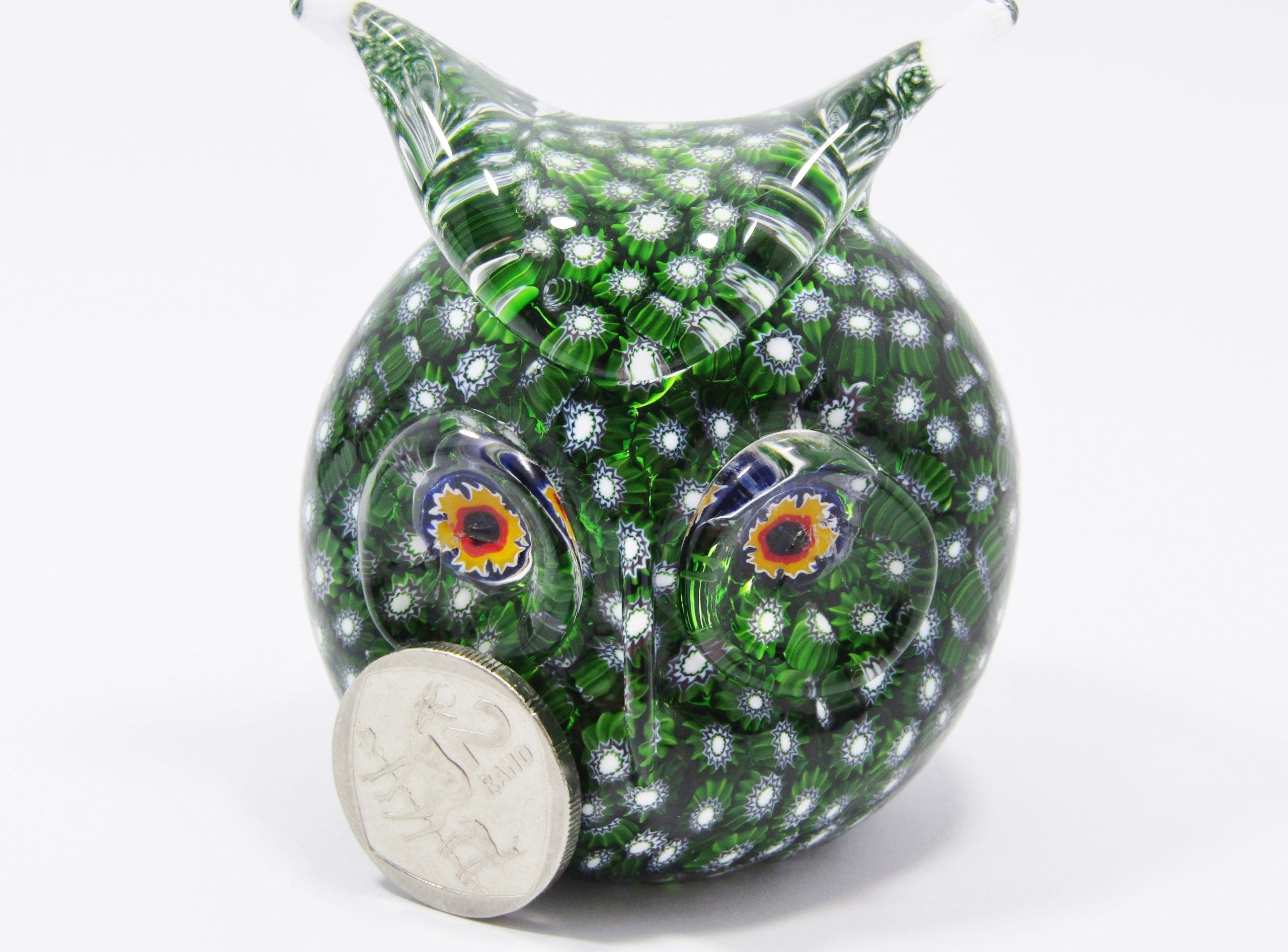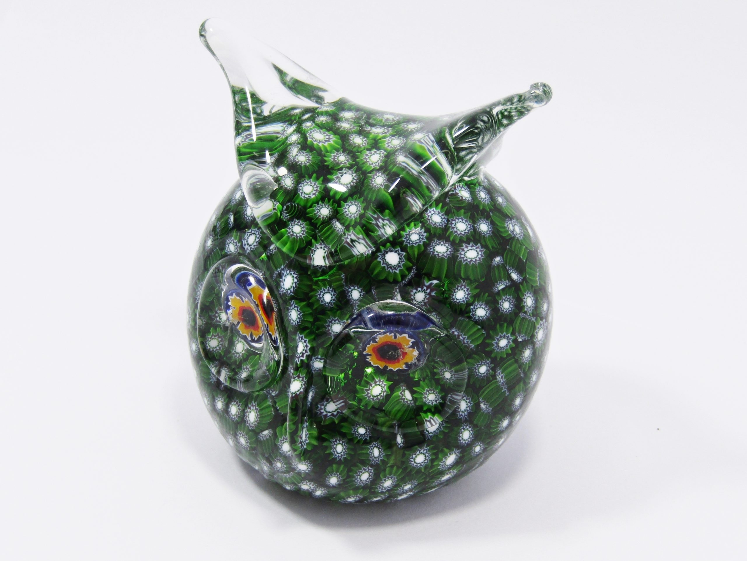 A Lovely Large Vintage Murano Millefiori Owl -See photos showing you more detail and design on this amazing piece in The Colors of Dark Green Navy and white -all in a mint condition part of our own Collection
