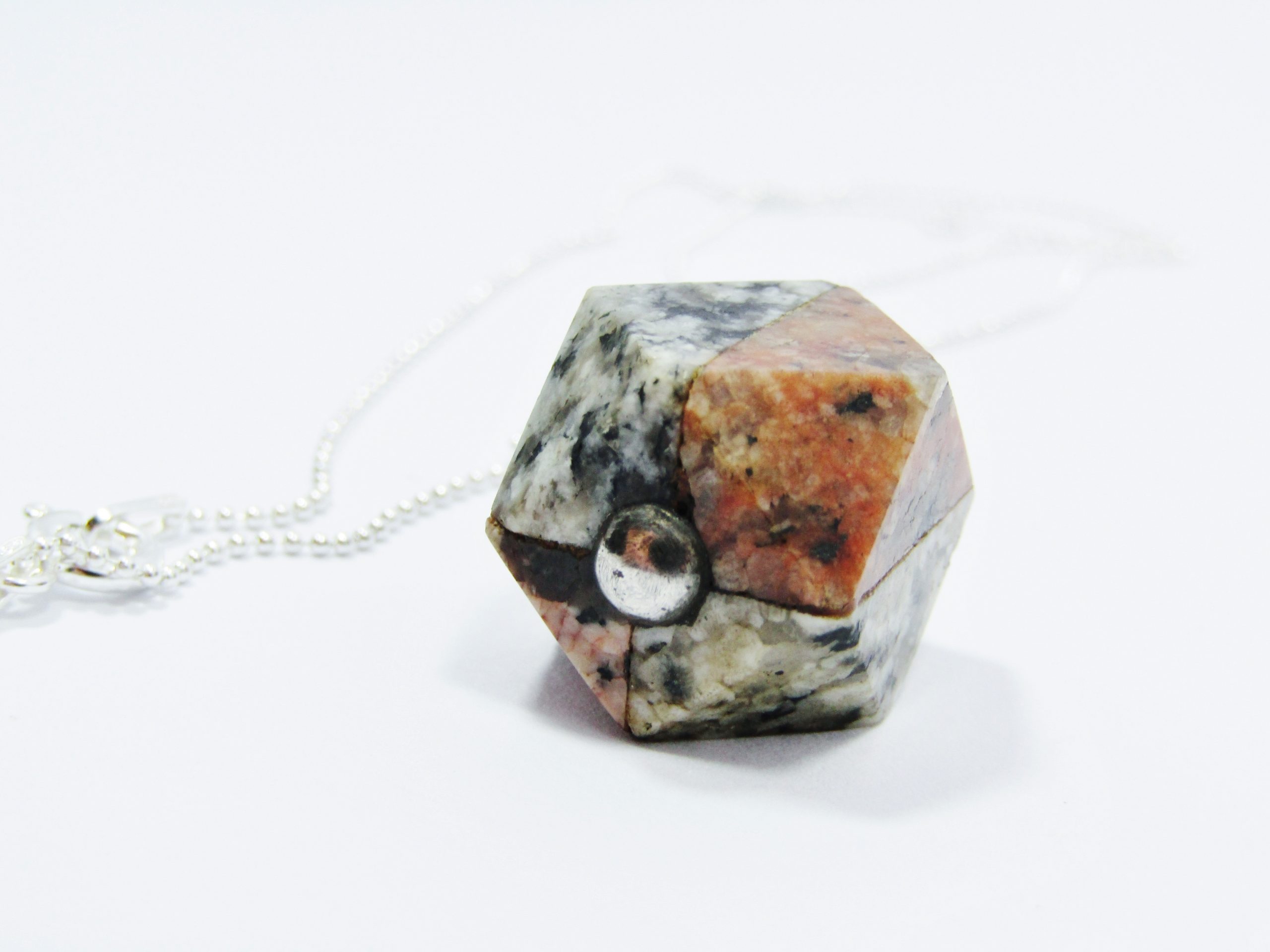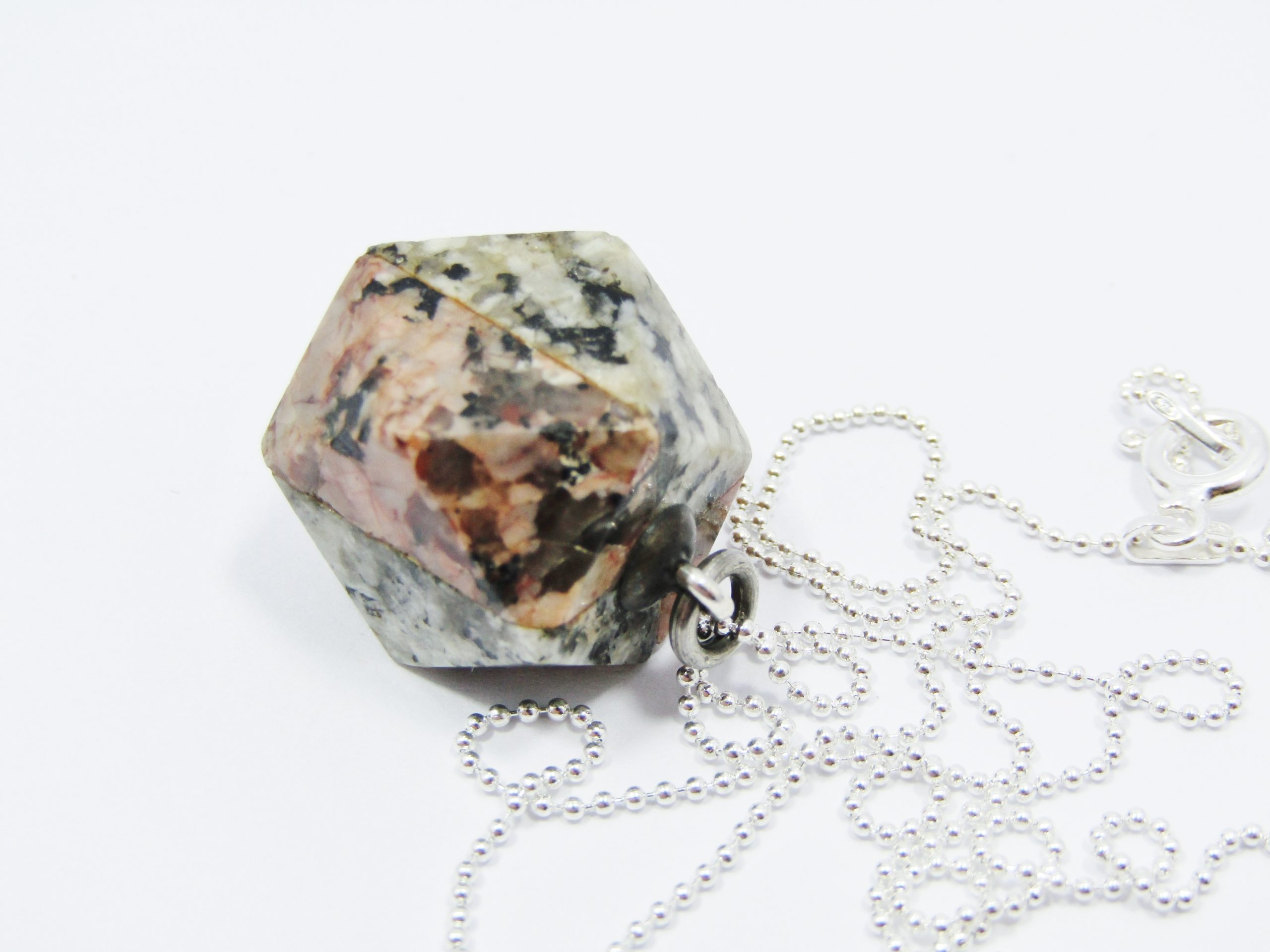 A Lovely Multi Color Granite Pendant On Chain in Sterling Silver.