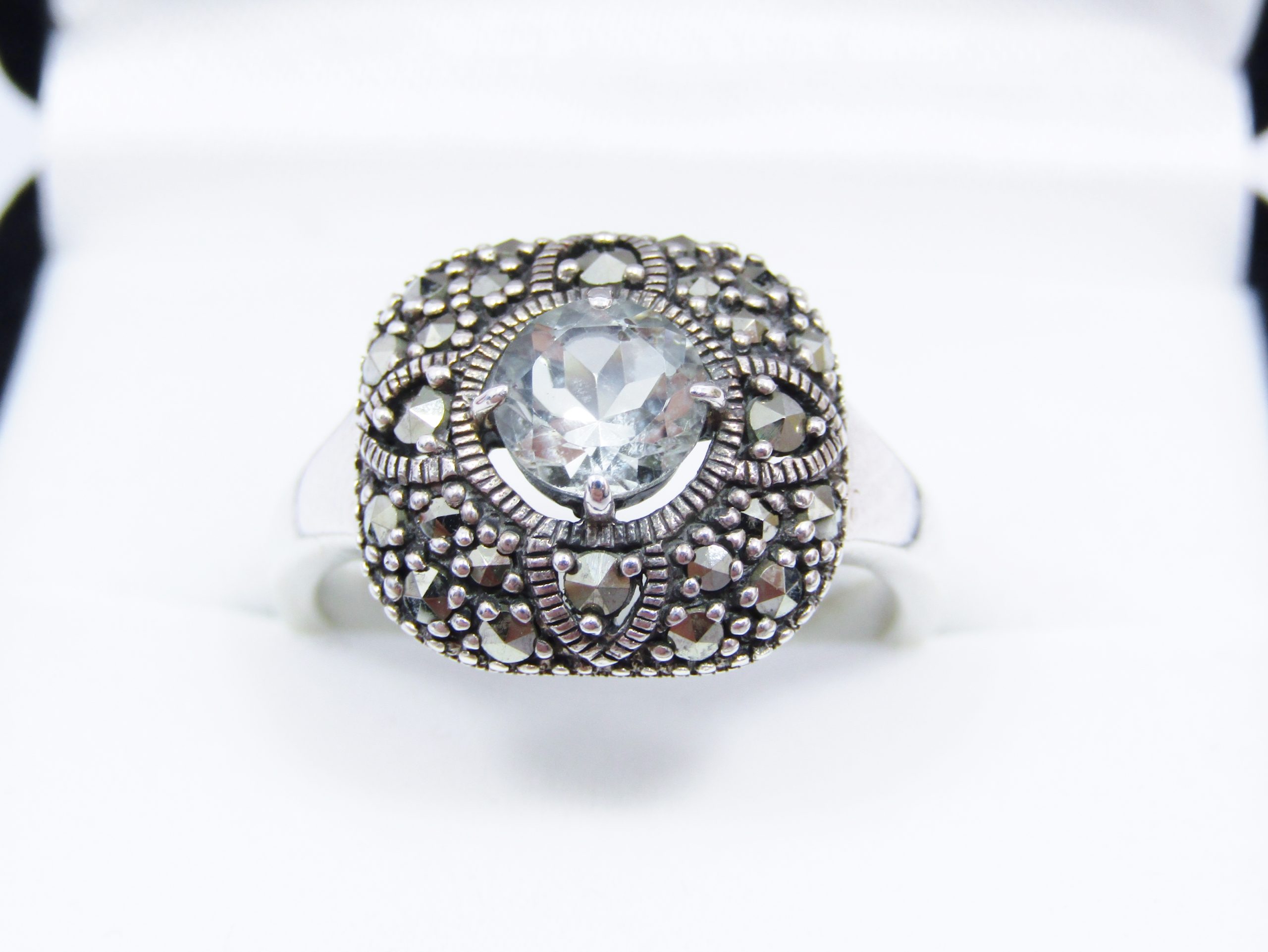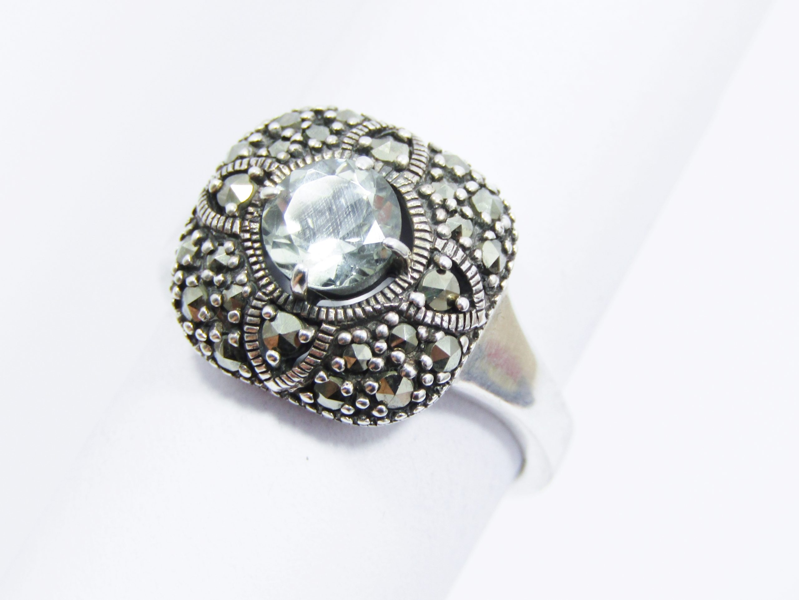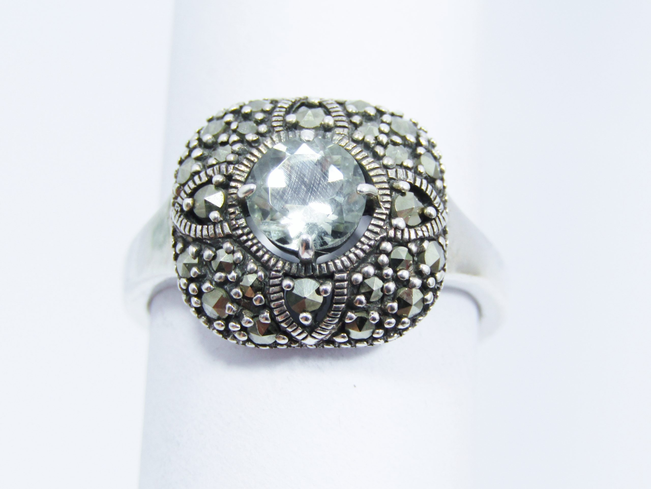 A Lovely Vintage Design Marcasite and Prasiolite Ring in Sterling Silver-See photos showing you more detail and design on this lovely piece -marked accordingly 925 Sterling Silver