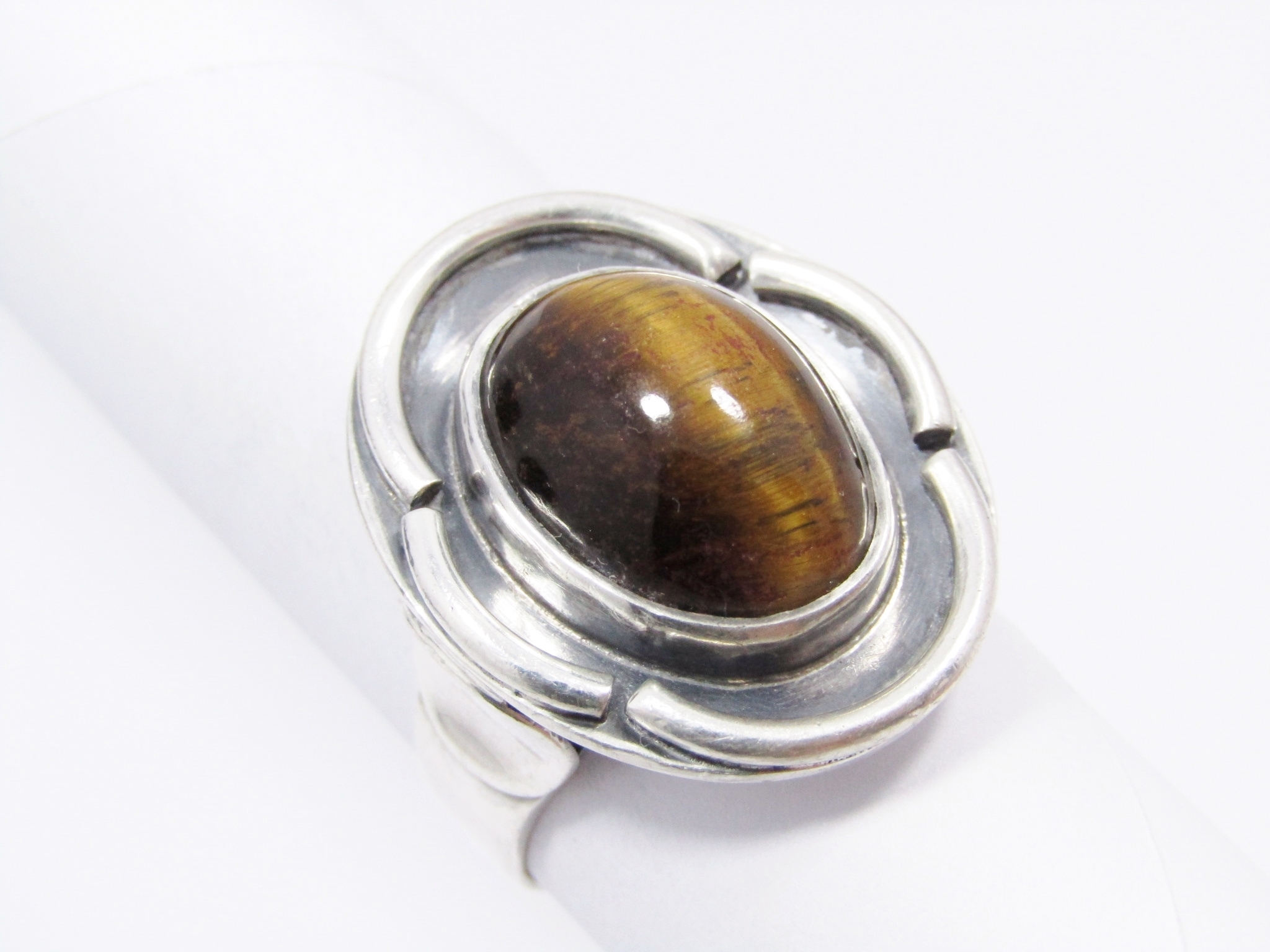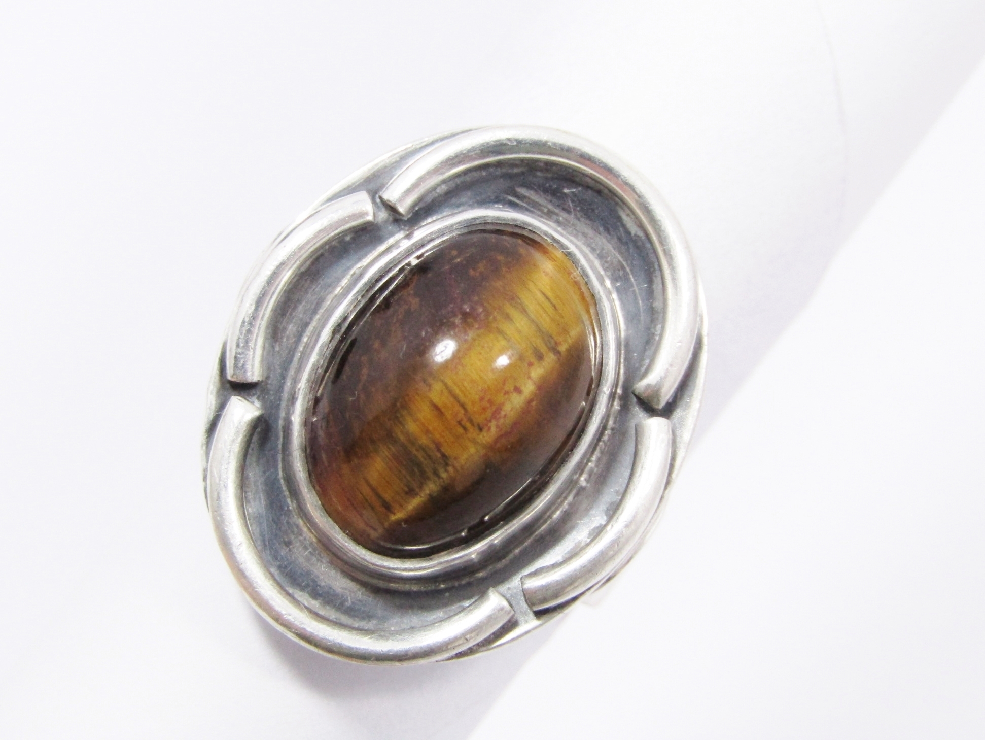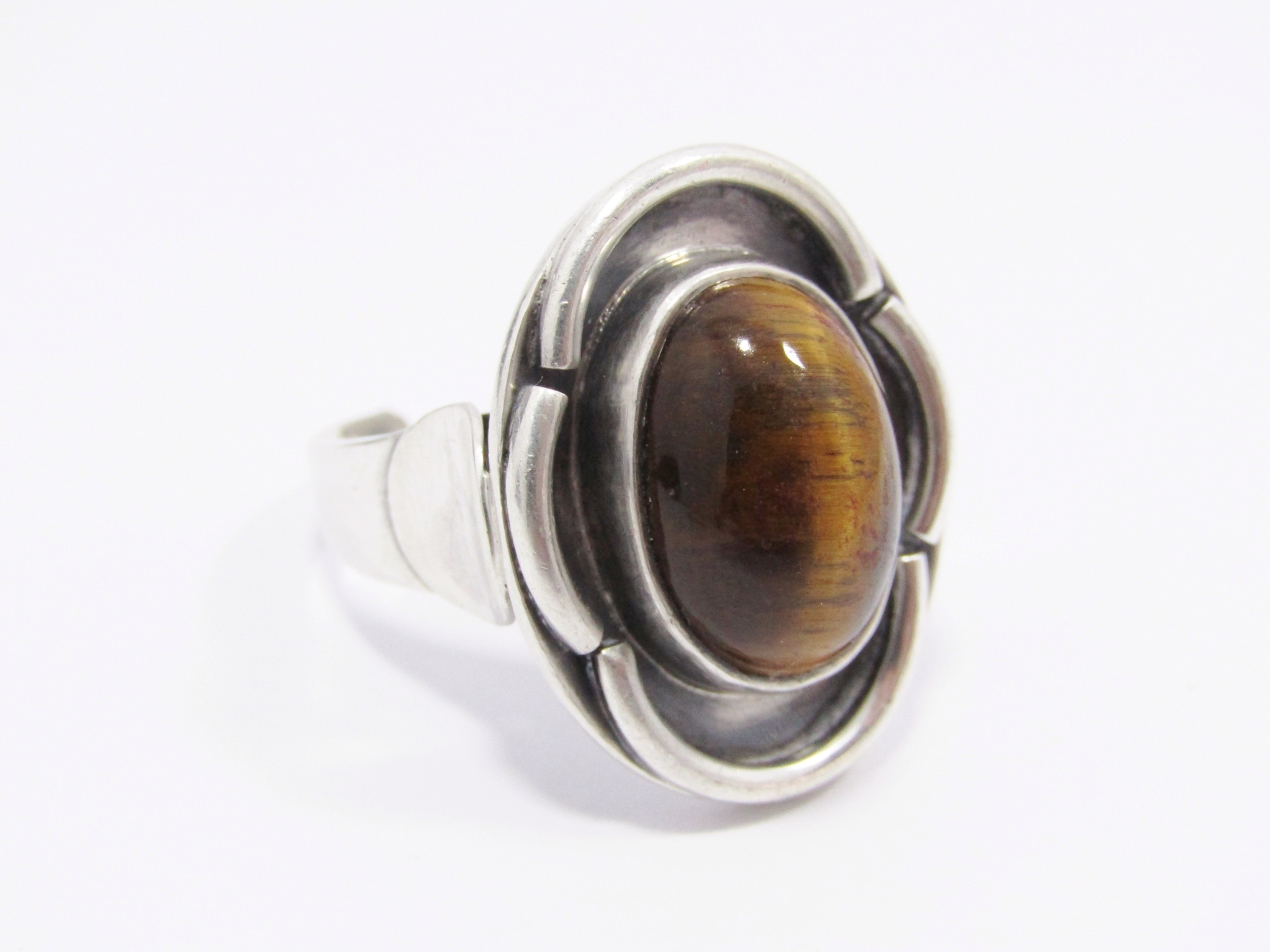 A Lovely Vintage Modernist Design Ring With a Tigers Eye Stone in Sterling Silver.