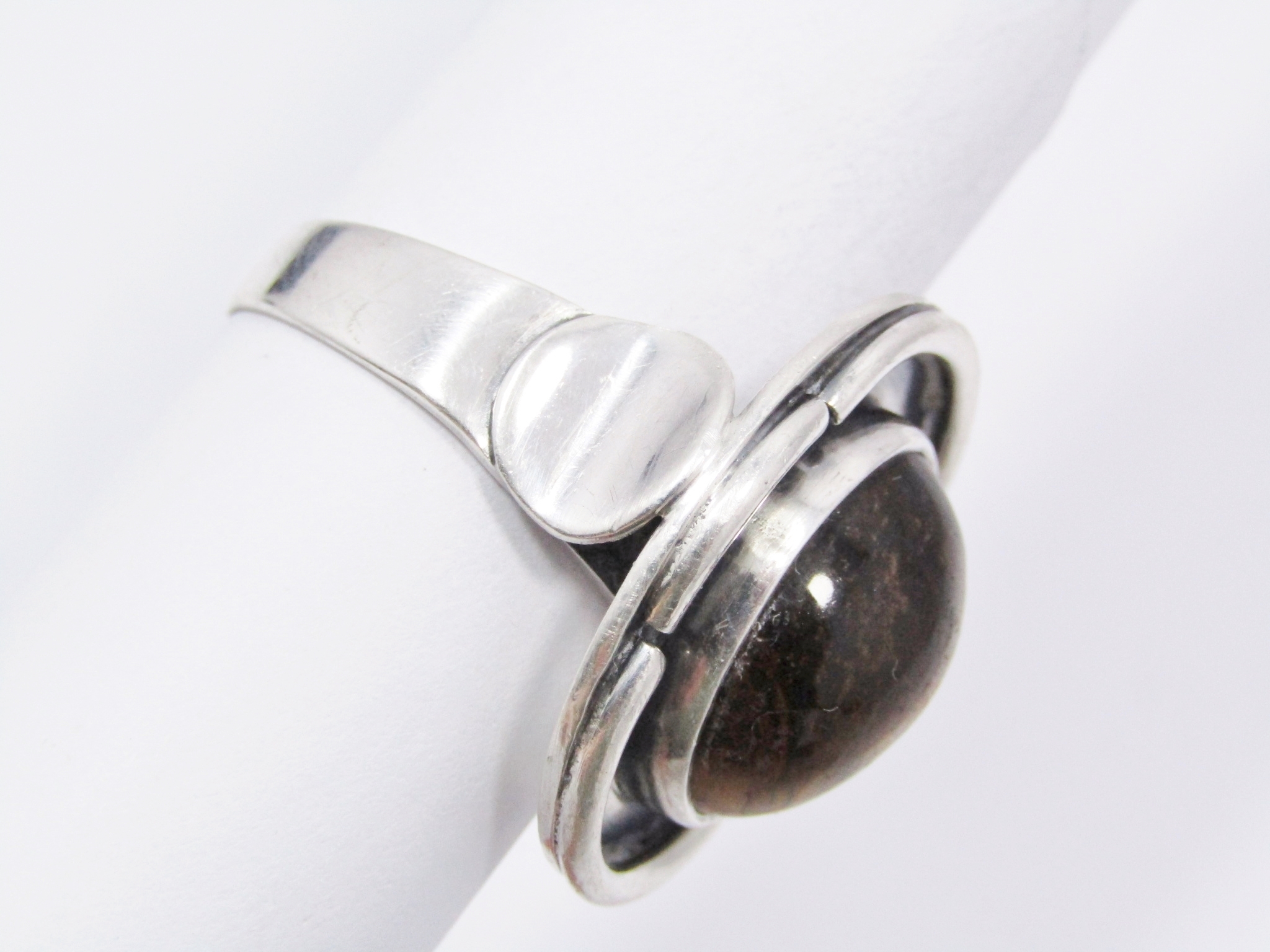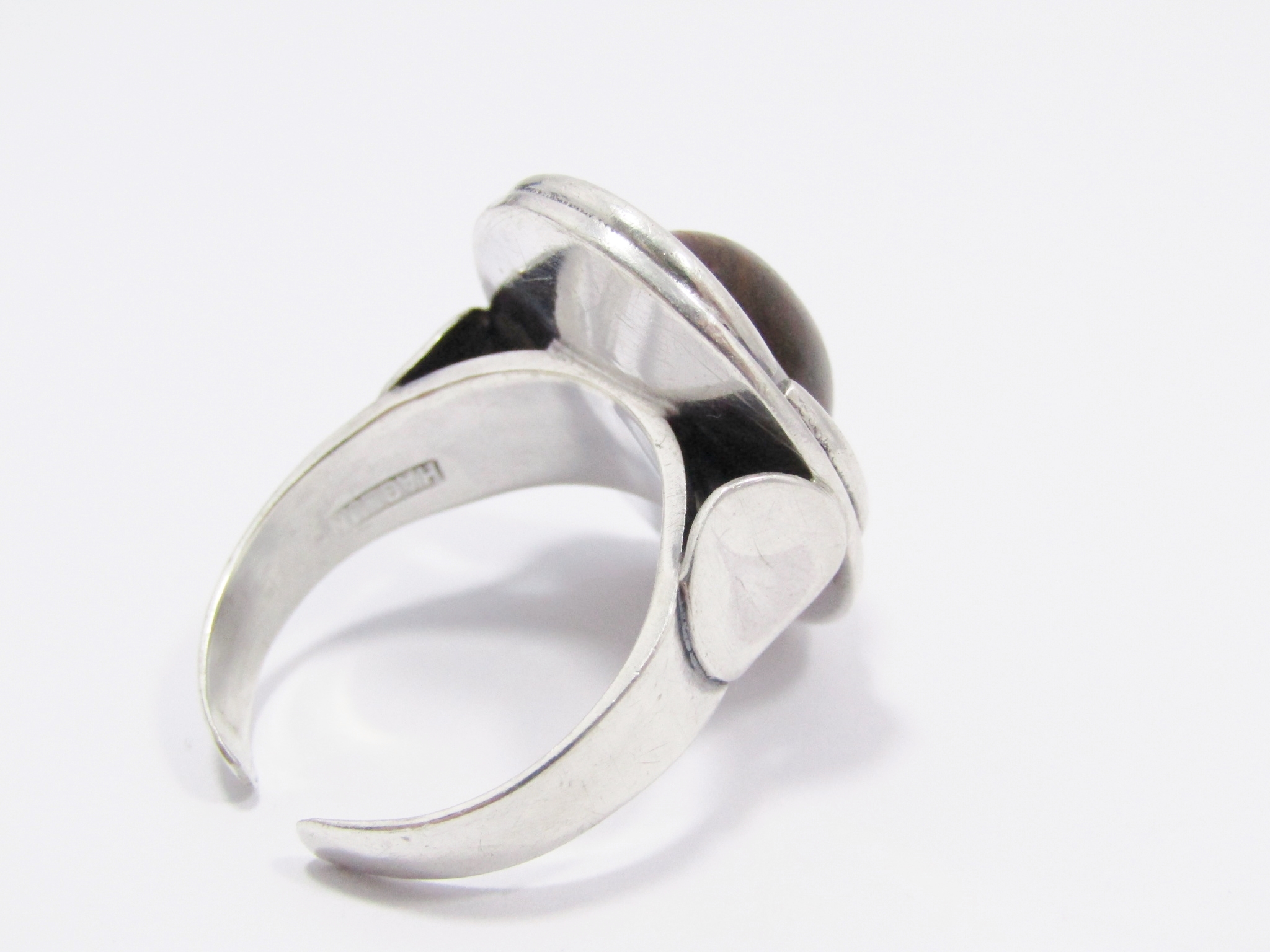 A Lovely Vintage Modernist Design Ring With a Tigers Eye Stone in Sterling Silver-See photos showing you more detail and design on this Amazing Piece -Marked accordingly HUGLUND STERLING SILVER Verified its Sterling Silver.