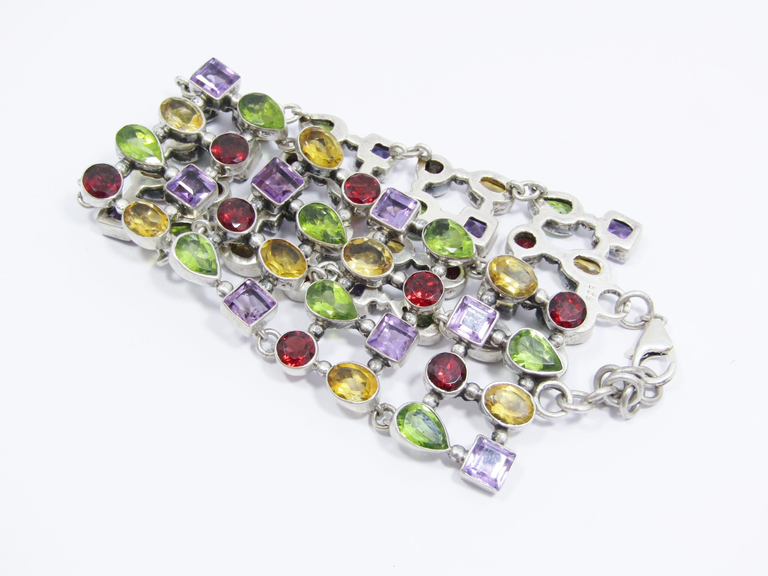 A Magnificent Broad Bangle Gemstone Bangle in Sterling Silver -See photos showing you more detail and design on this breathtaking piece-marked accordingly 925 Sterling Silver.
