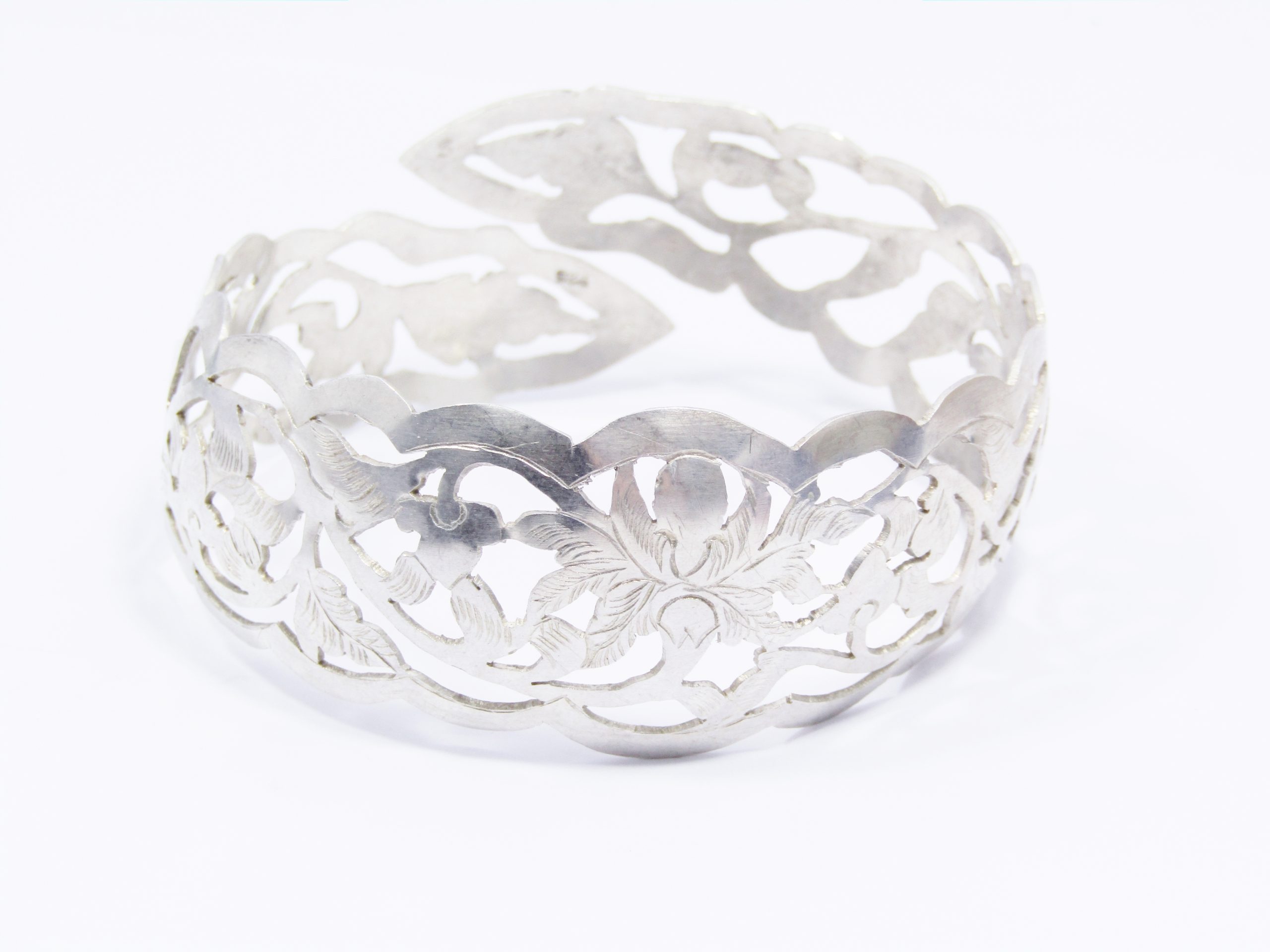 A Stunning Board Filigree Design Cuff Bangle in Sterling Silver