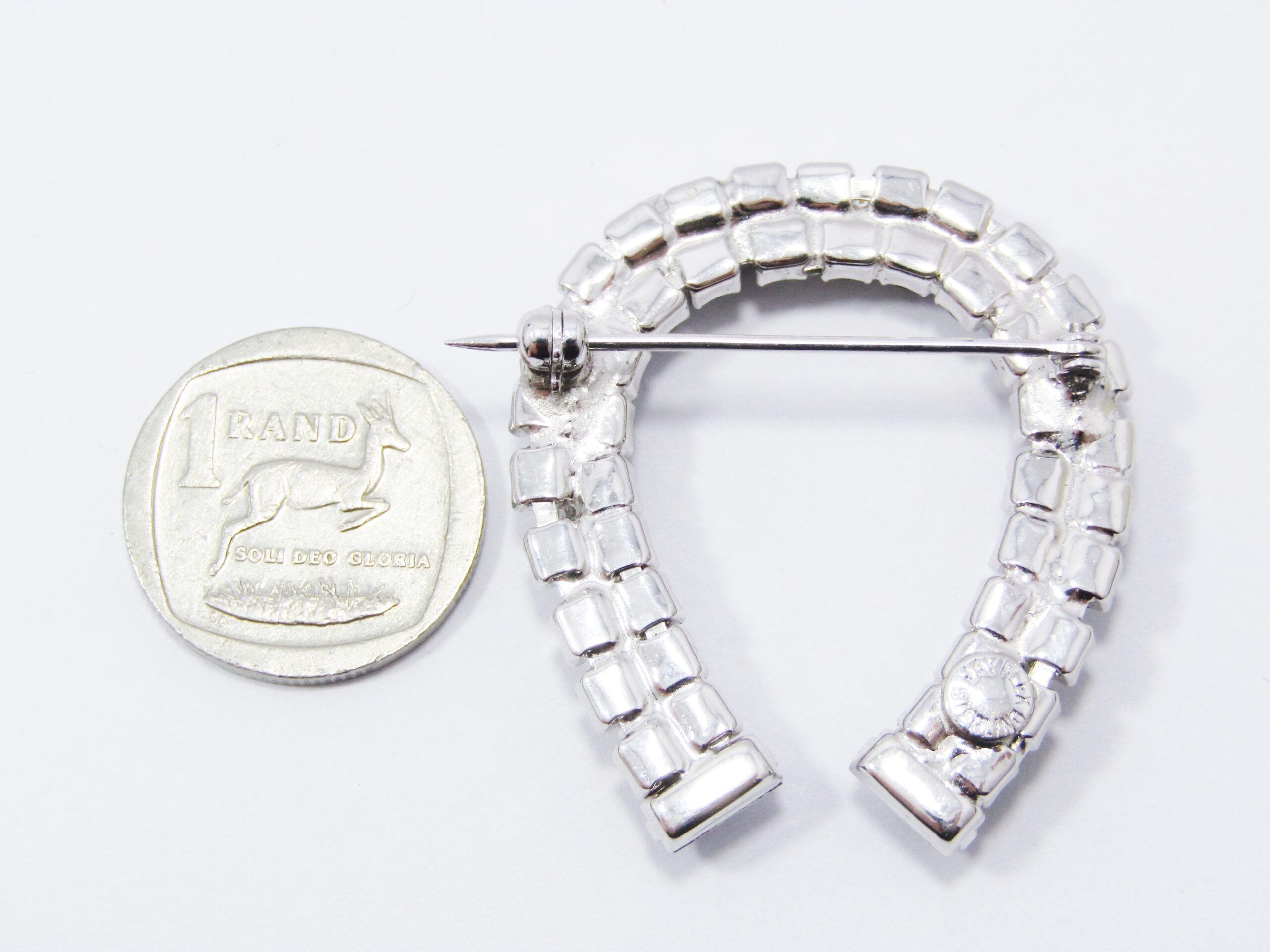 Amazing! Vintage Sterling Silver & Rhinestone Horse Shoe Brooch