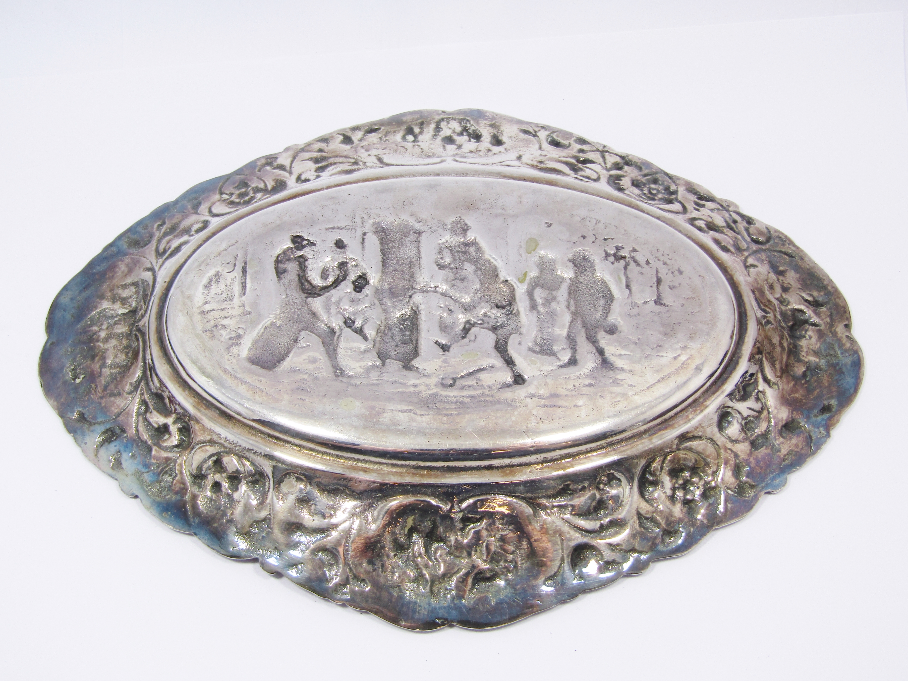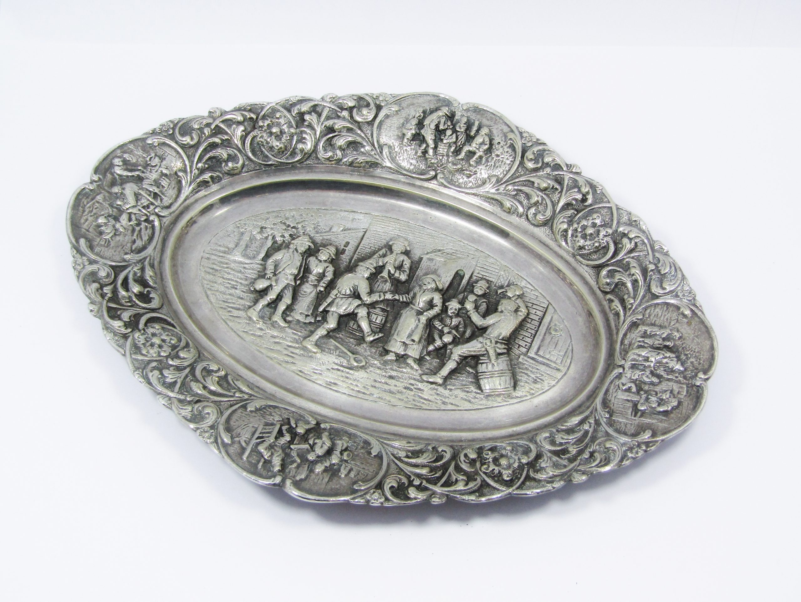 A beautiful, vintage Dutch silver-plated oval dish with ornate relief detail. In excellent overall condition, see photos for details.