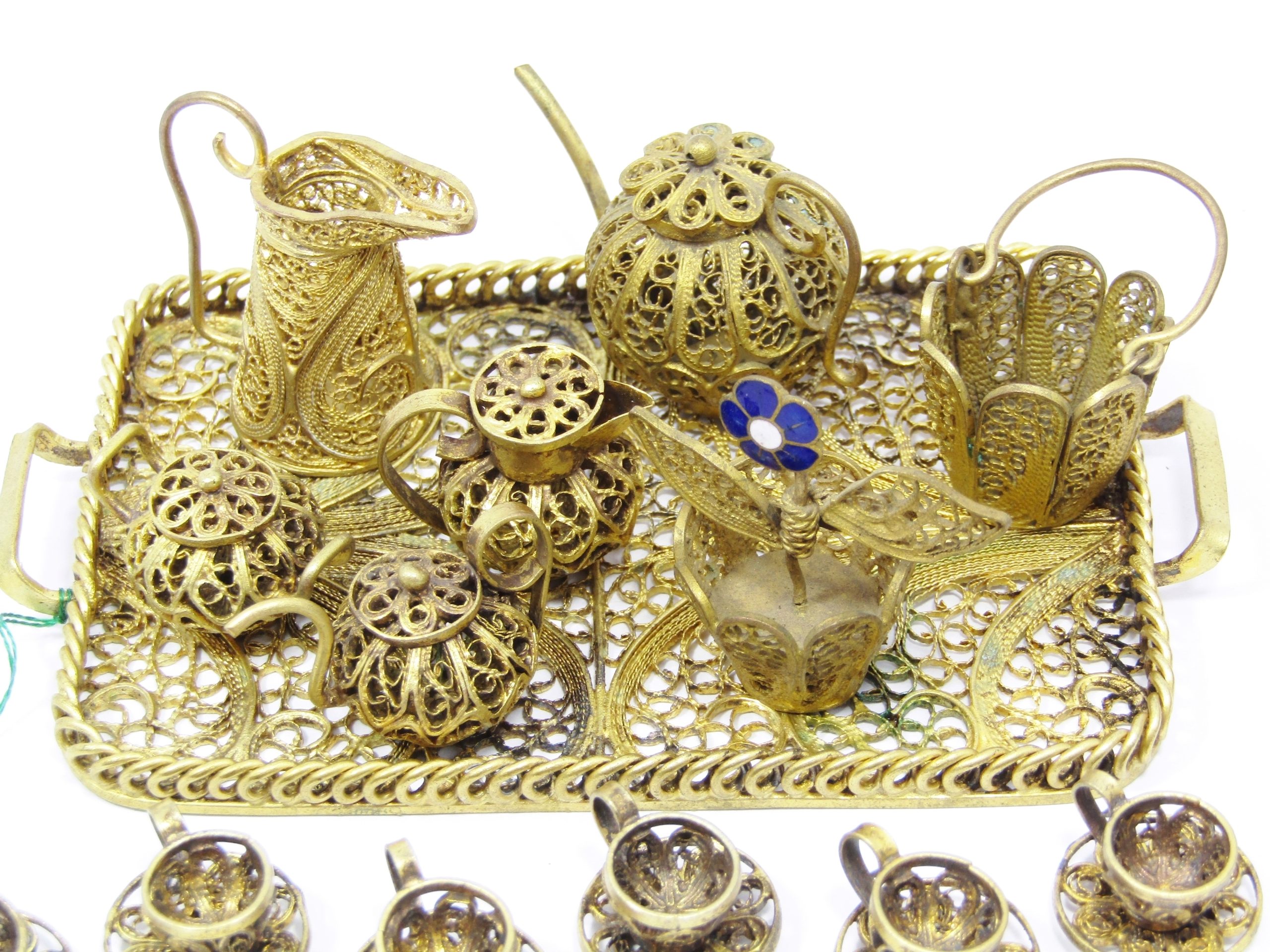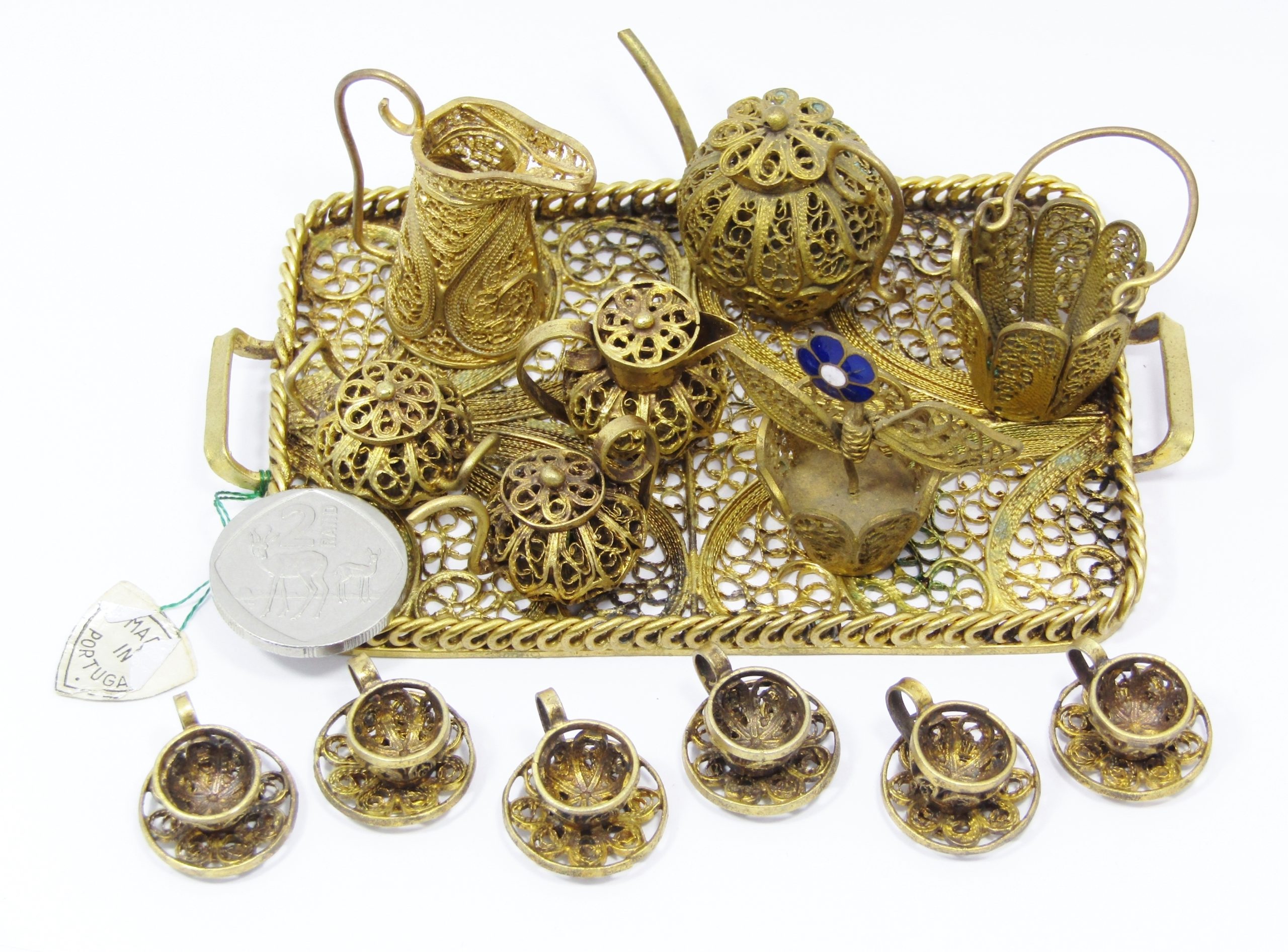 A beautiful, vintage Portuguese miniature brass metal filigree set, all handmade and beautiful! A rare find, and in lovely condition.