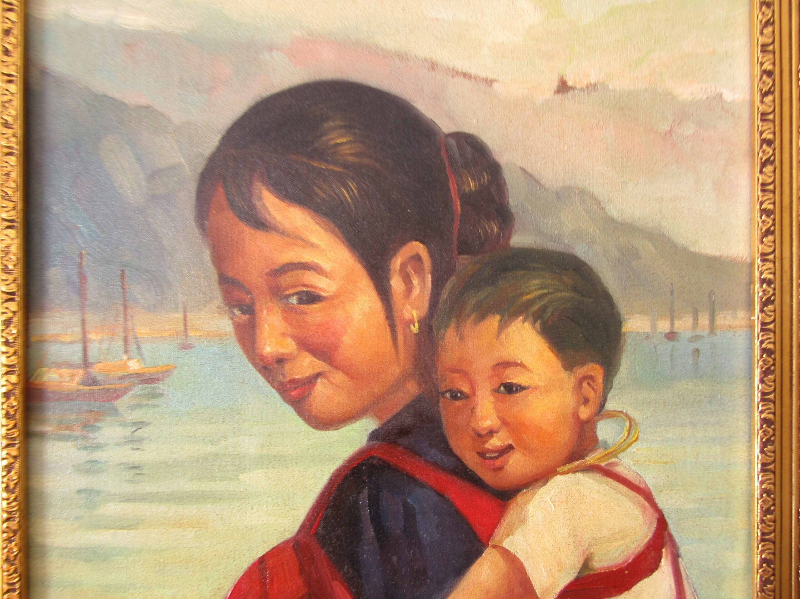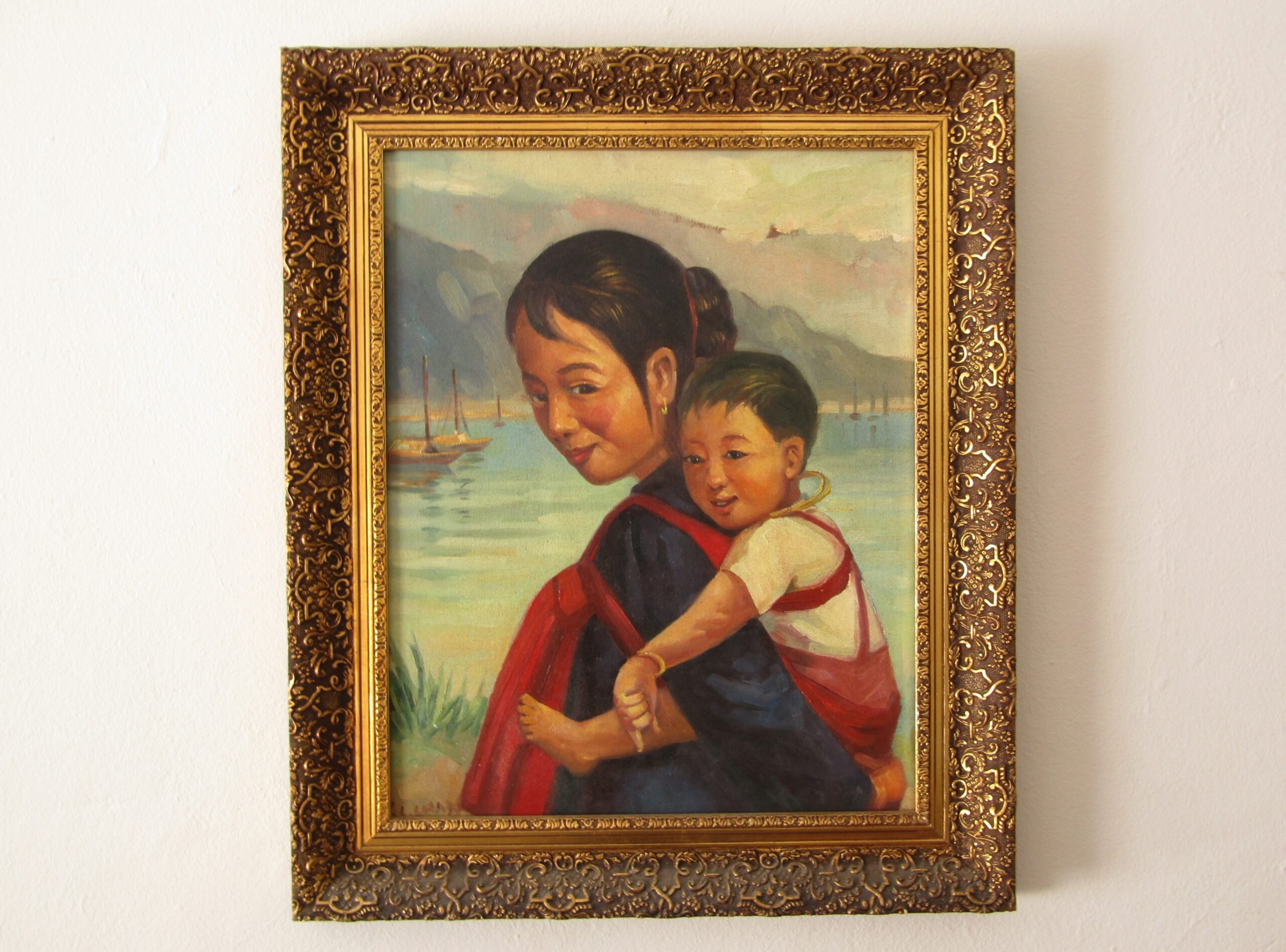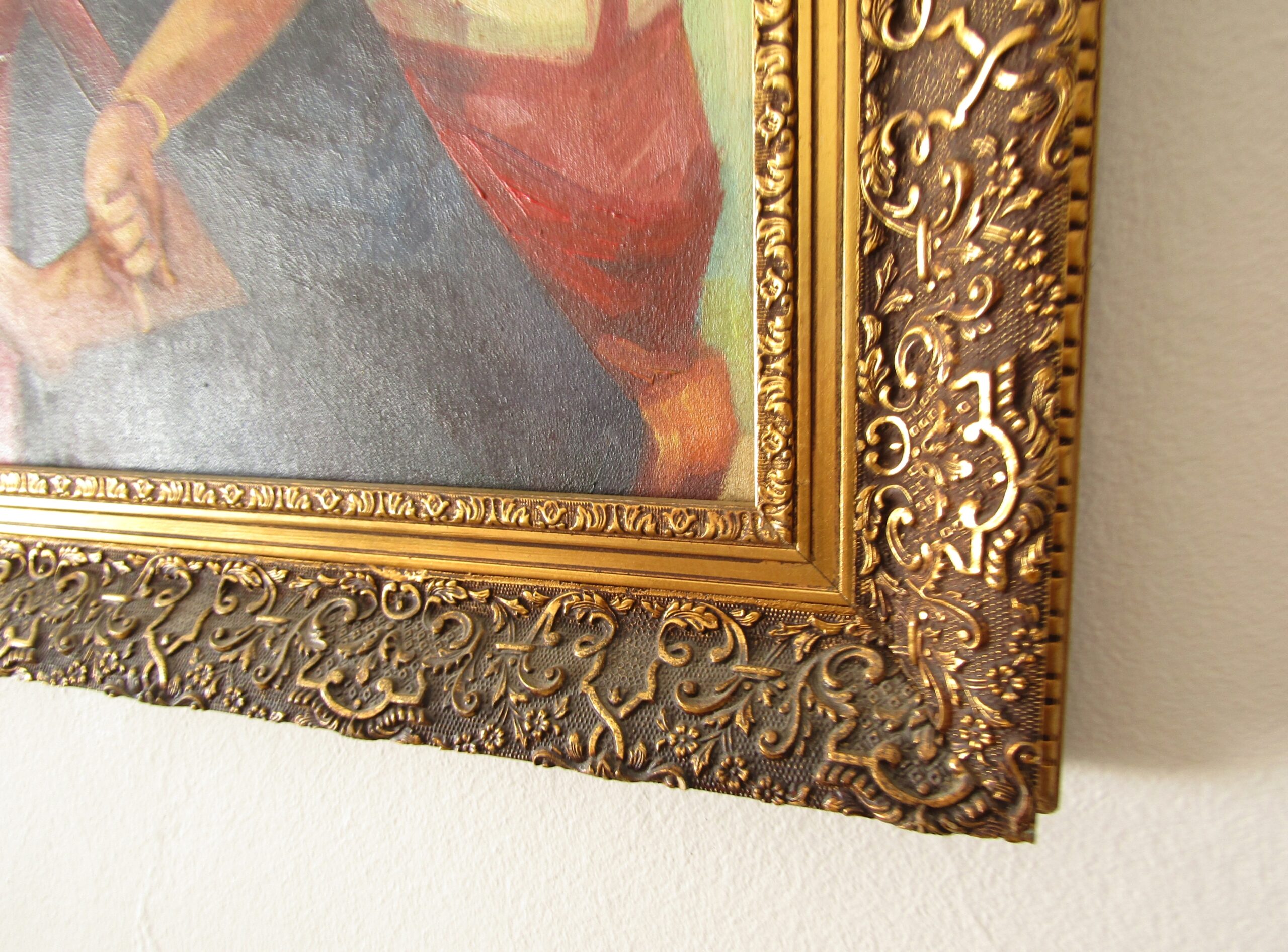 A beautiful, vintage oriental themed portrait oil painting, with its original ornate gilt wood frame. In good overall condition - see photos for details.