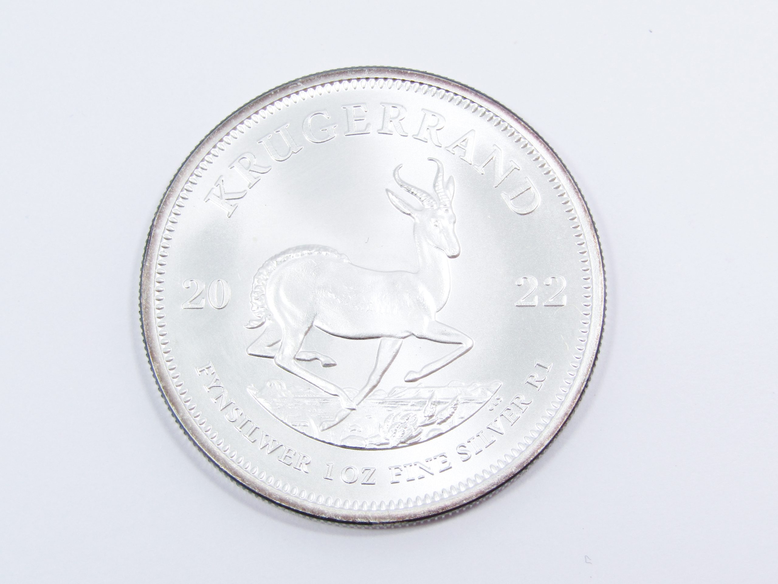 A 1 ounce (1OZ) fine silver Kruger Rand, 2022 date.(Code: S26O053)