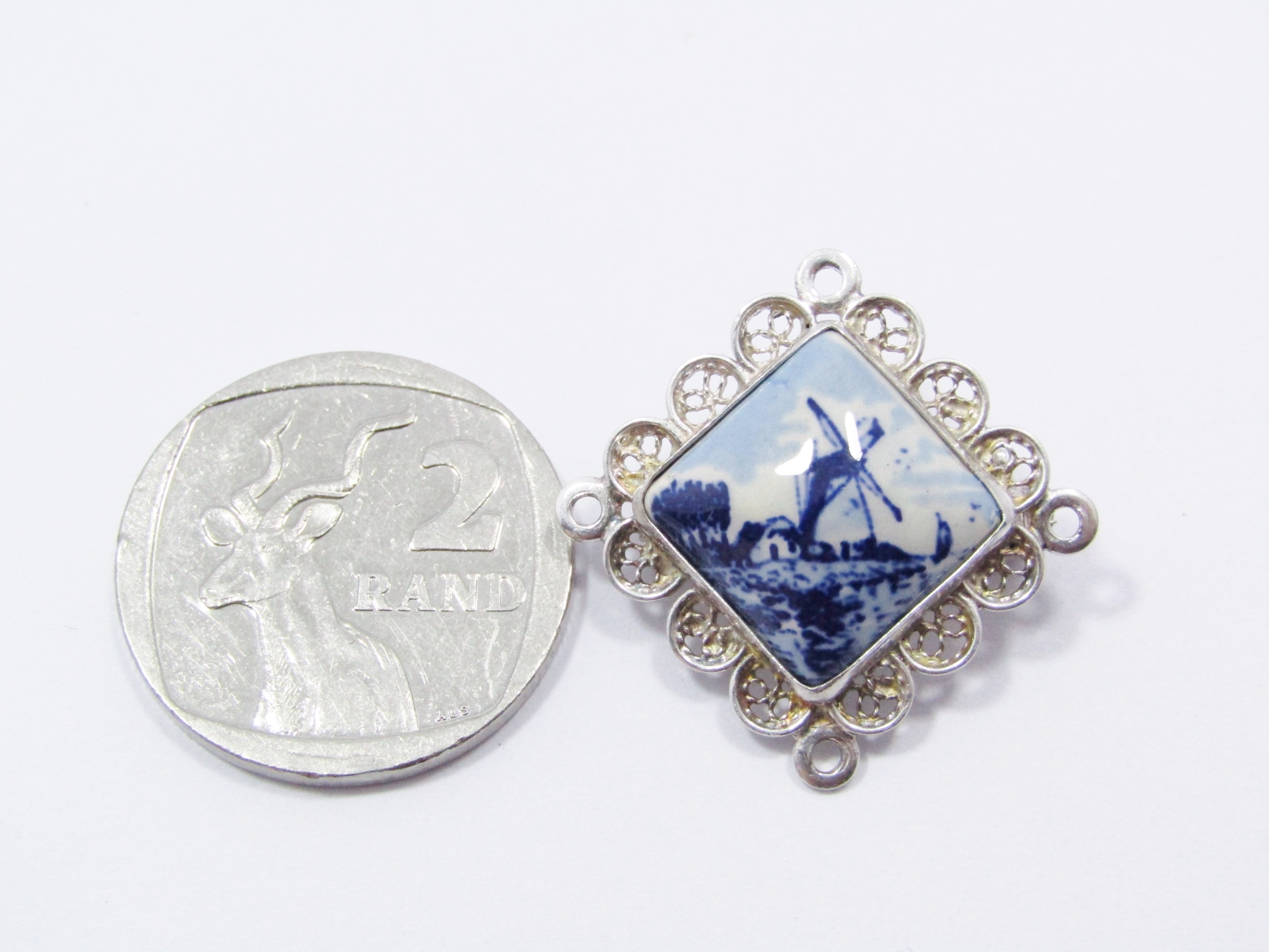 A Lovely Dainty Delft Brooch in Silver-See photos showing you more detail and design on this lovely Piece - marked accordingly 835 Silver.