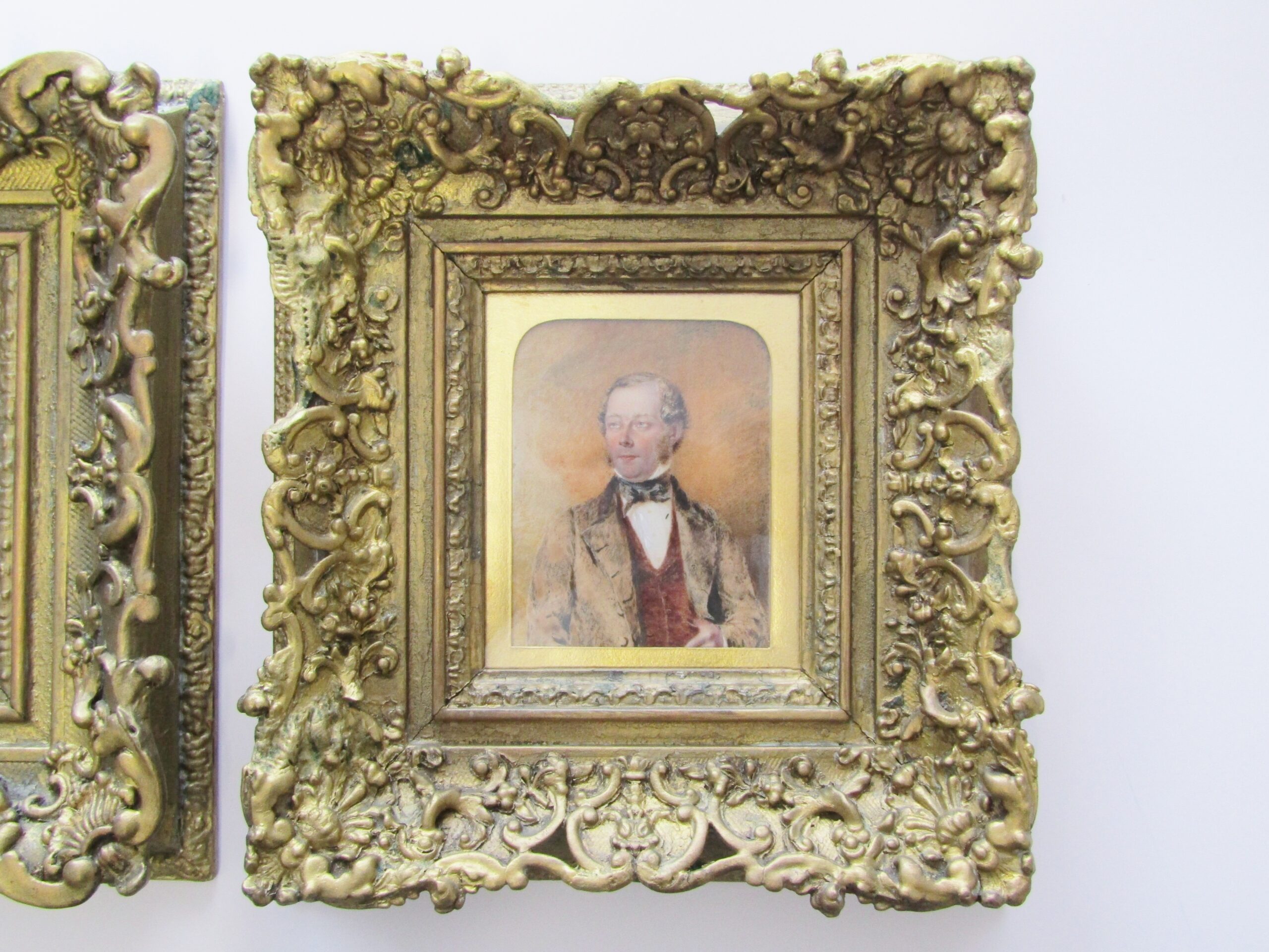 In this example we have a pair of portrait paintings, circa 1850, of a nobleman and assuming his wife, painted in finely detailed and generously applied watercolours, in original (restored) frames.