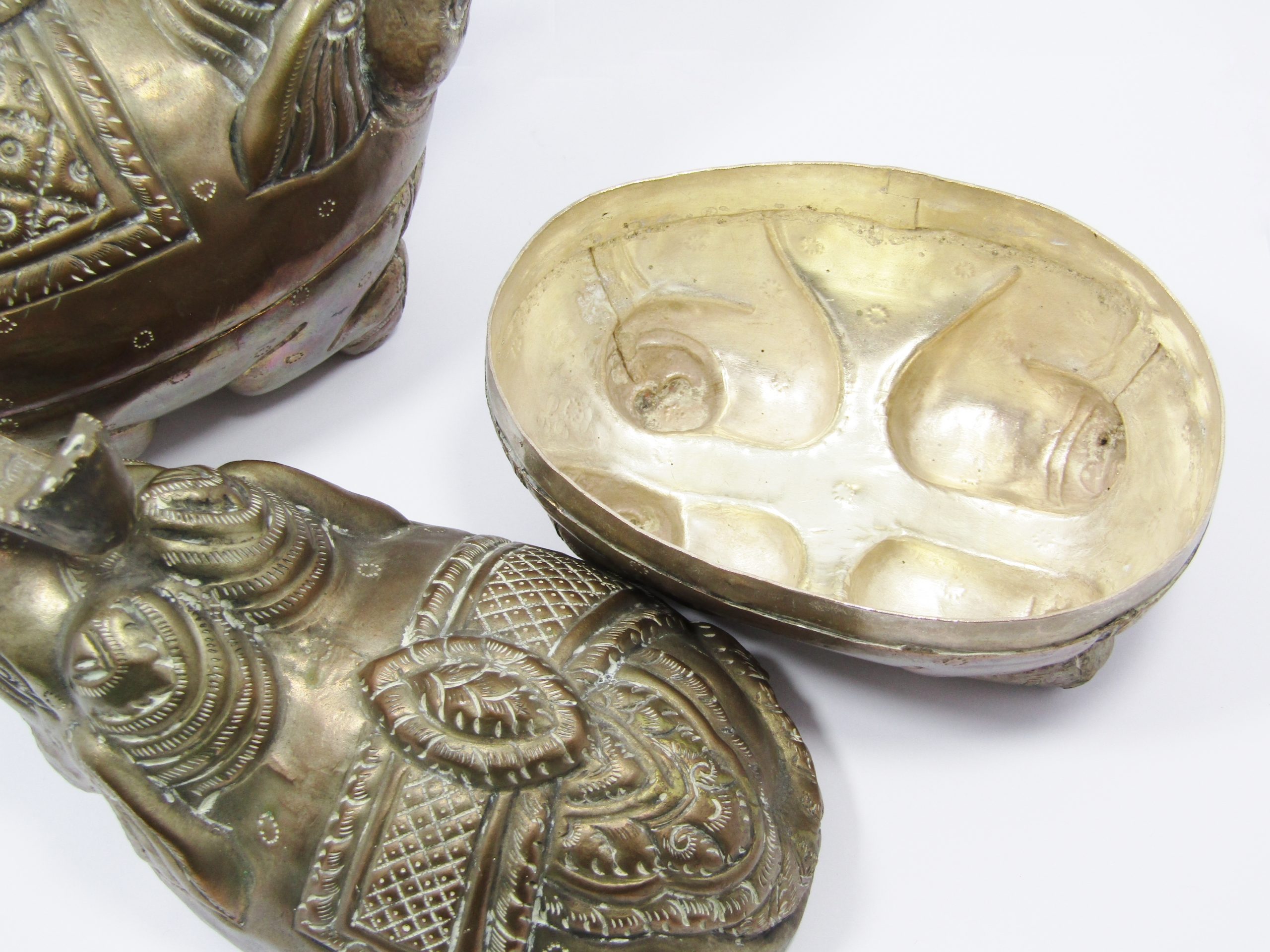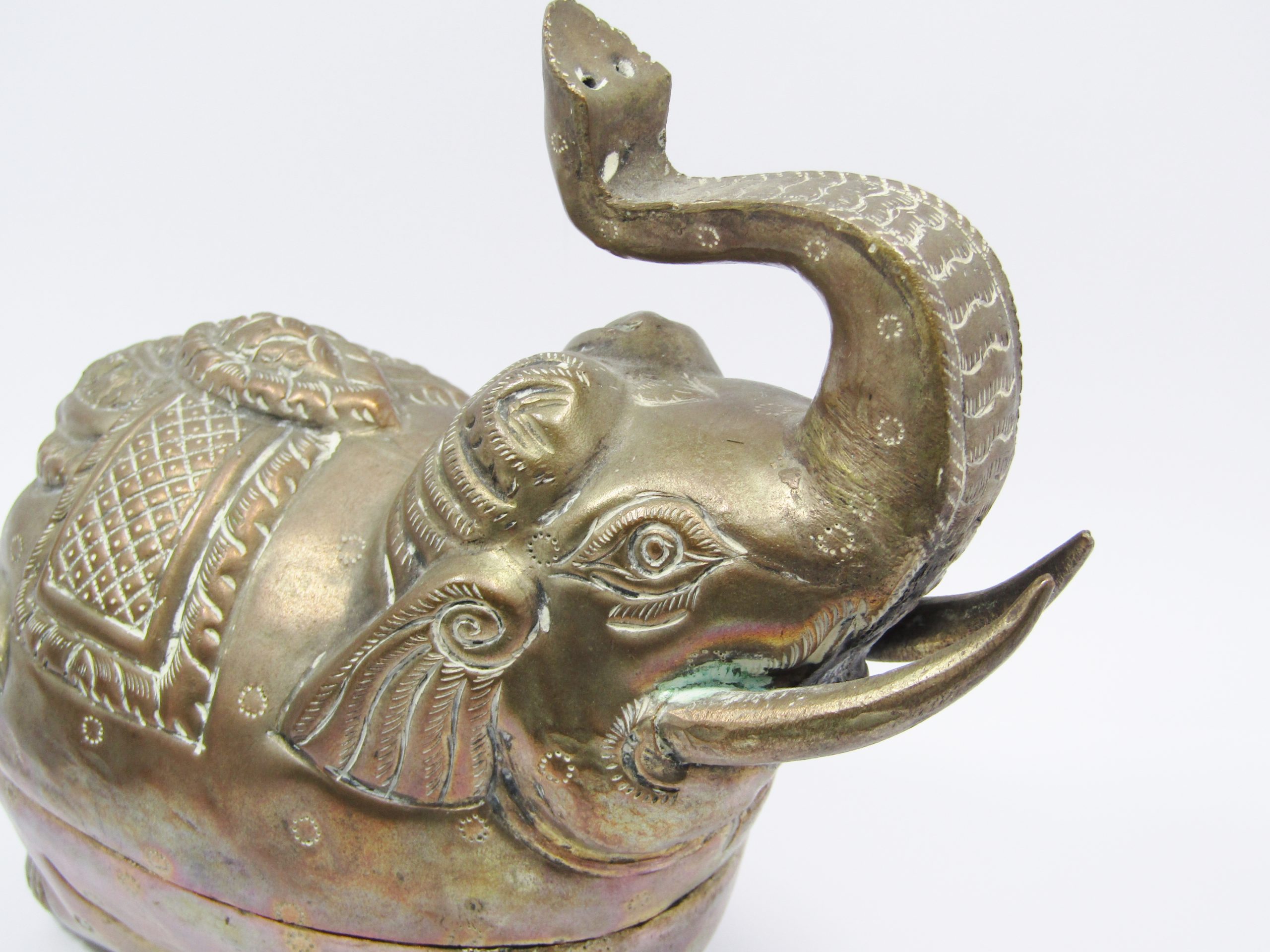 A rare find, this beautiful pair of silver betel boxes in the form of elephants are made in Cambodia early 20th-Century and originally used as a decorative betel (a leaf native to Asia) box. See photos for details, with lovely developed patina, in excellent condition and a rare find!