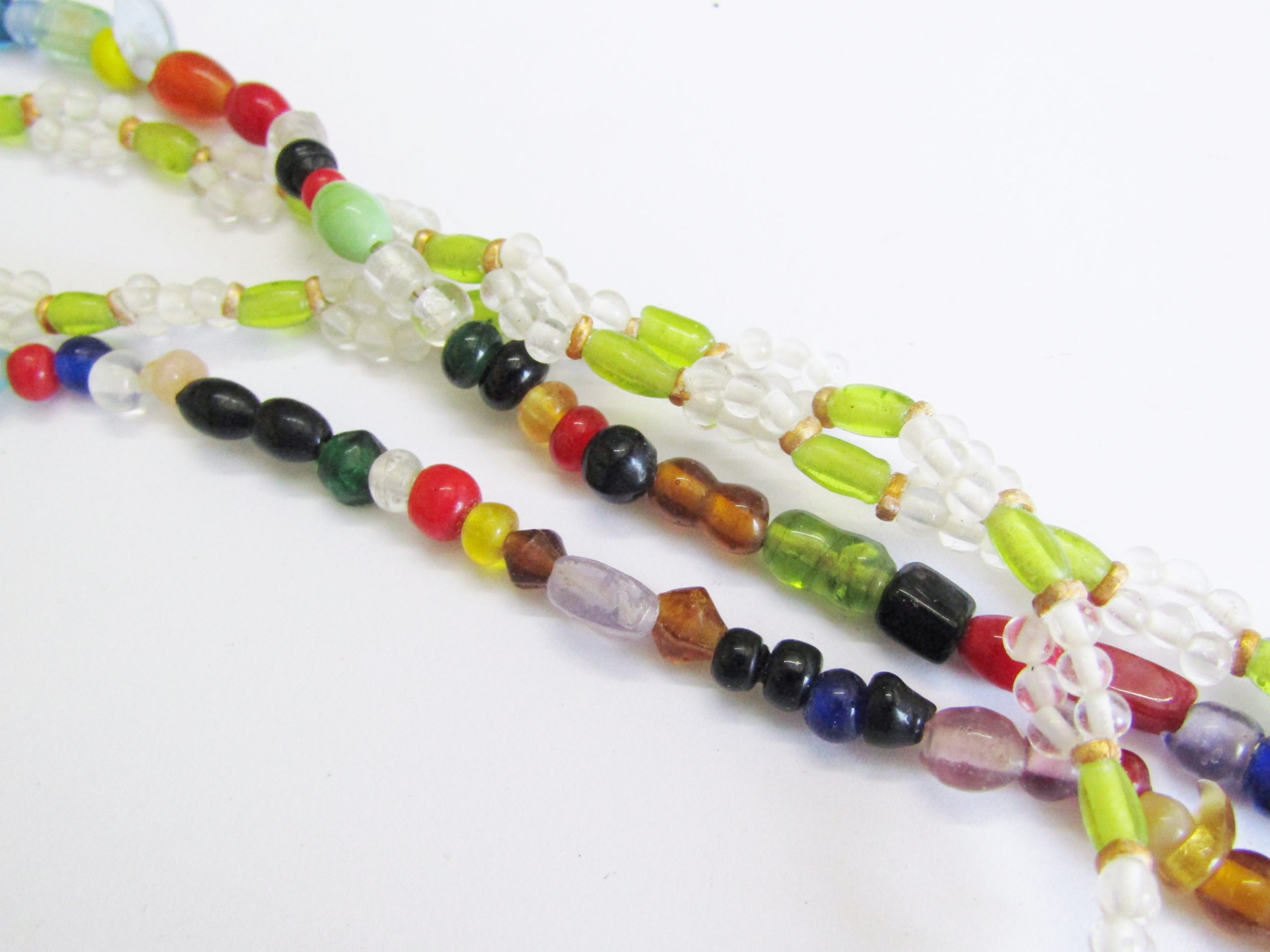 A set of three vintage Czech / Bohemian art glass bead necklaces, ready to wear. Each necklace measures 60 cm in total length.