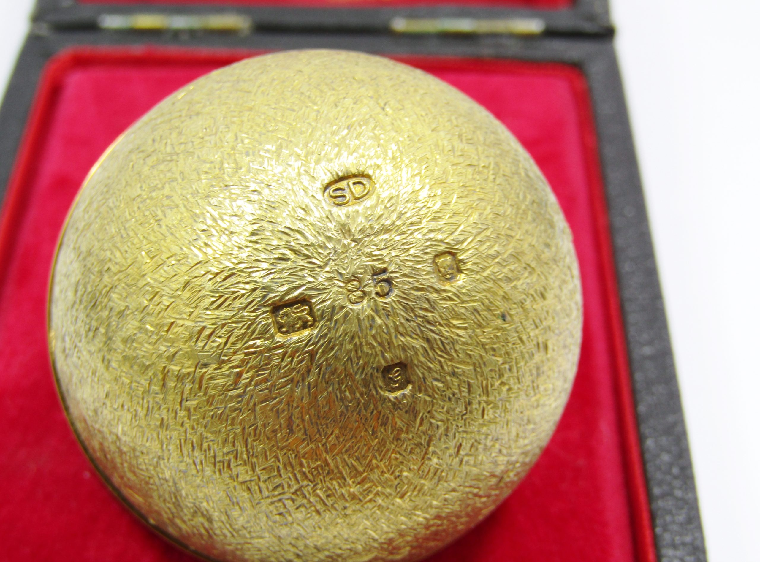 A stunning limited edition of 100 by renowned silversmith Stuart Devlin, this example is part of his signature series of silver gilt eggs, each opening to a different surprise inside. In this example, the interior is enamelled with a green base with a hen and chick, hallmarked for London England with date letter for 1981. Includes original box, in excellent overall condition with lovely naturally aged patina. Serial number 85/100.