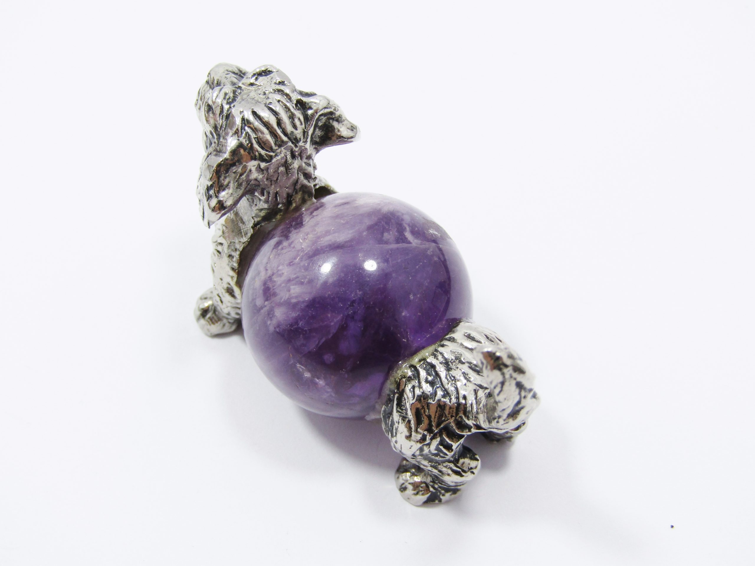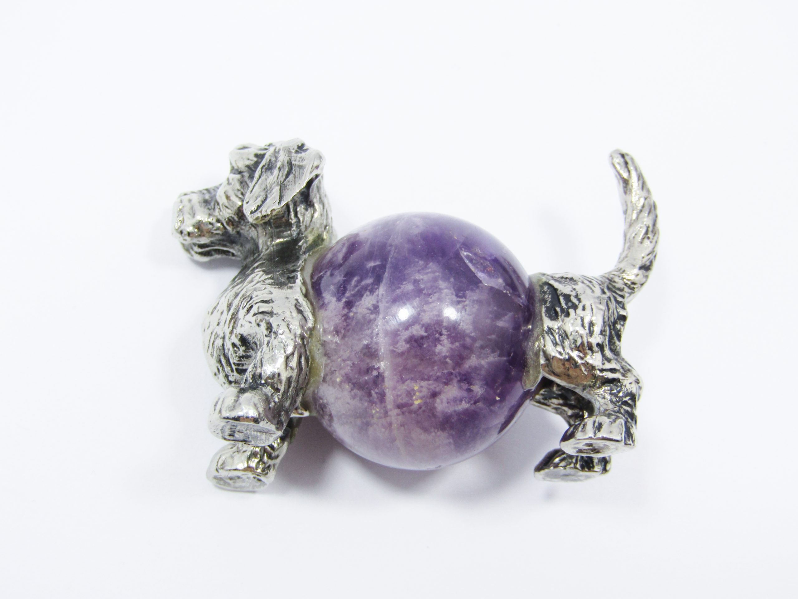 A lovely vintage silver-plated metal and amethyst quartz gemstone figurine, in the form of a doggy. In good overall condition.