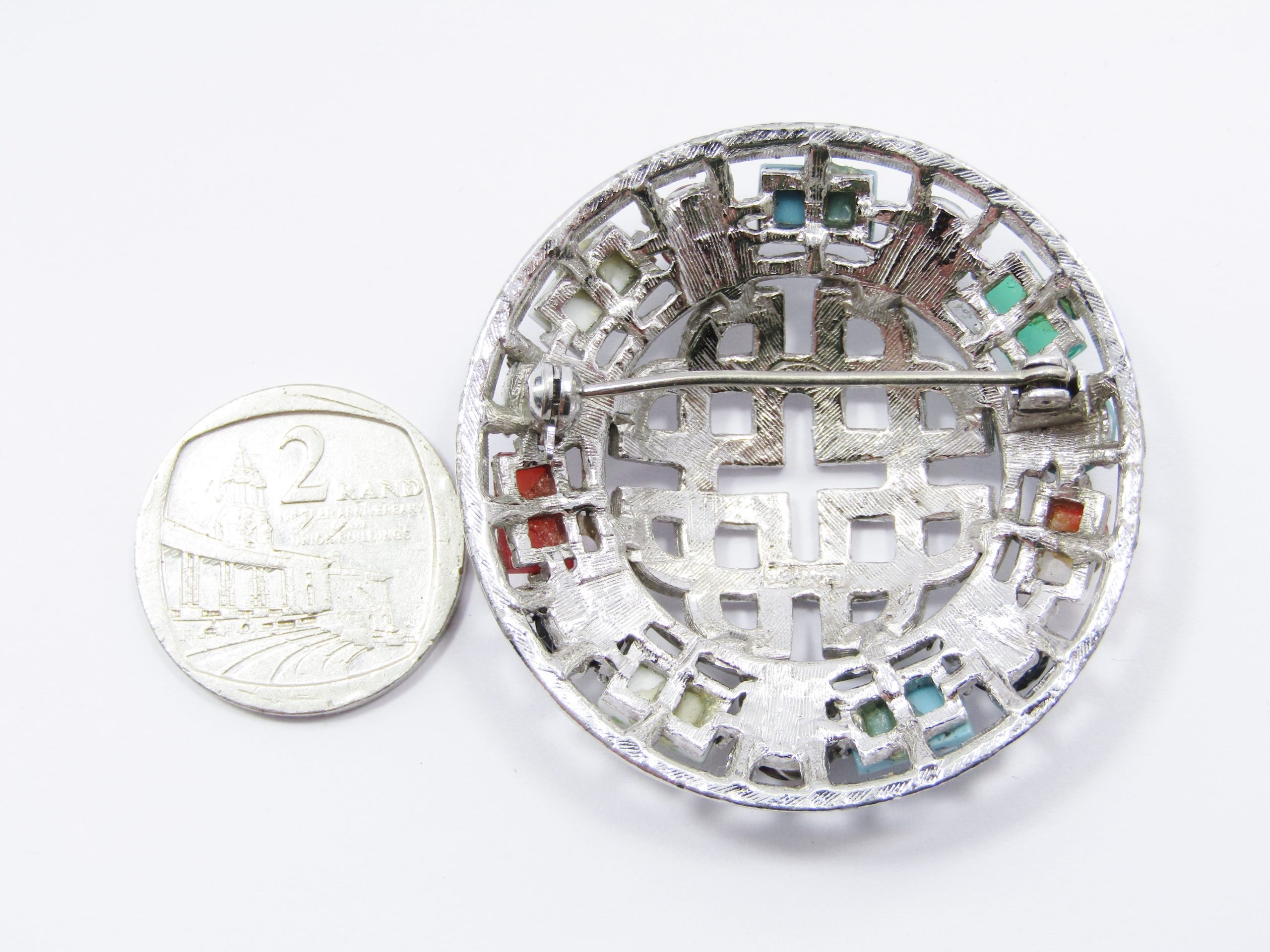 A lovely, vintage collectable costume jewellery brooch in celtic style with colourful glass stones, made by SPHINX. See photos for details, in excellent condition.